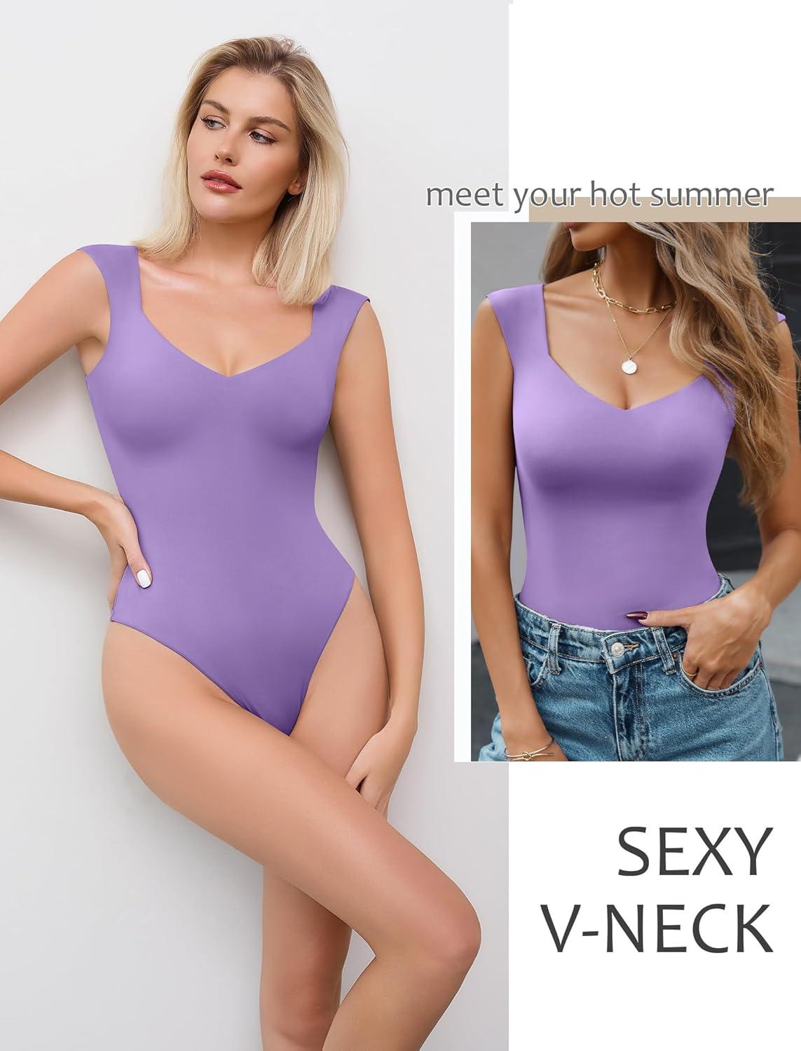 imageAvidlove Body Suits for Womens Sexy Bodysuit Tank Top Thong Body Suit Seamless Double Lined Going Out TopsLilac