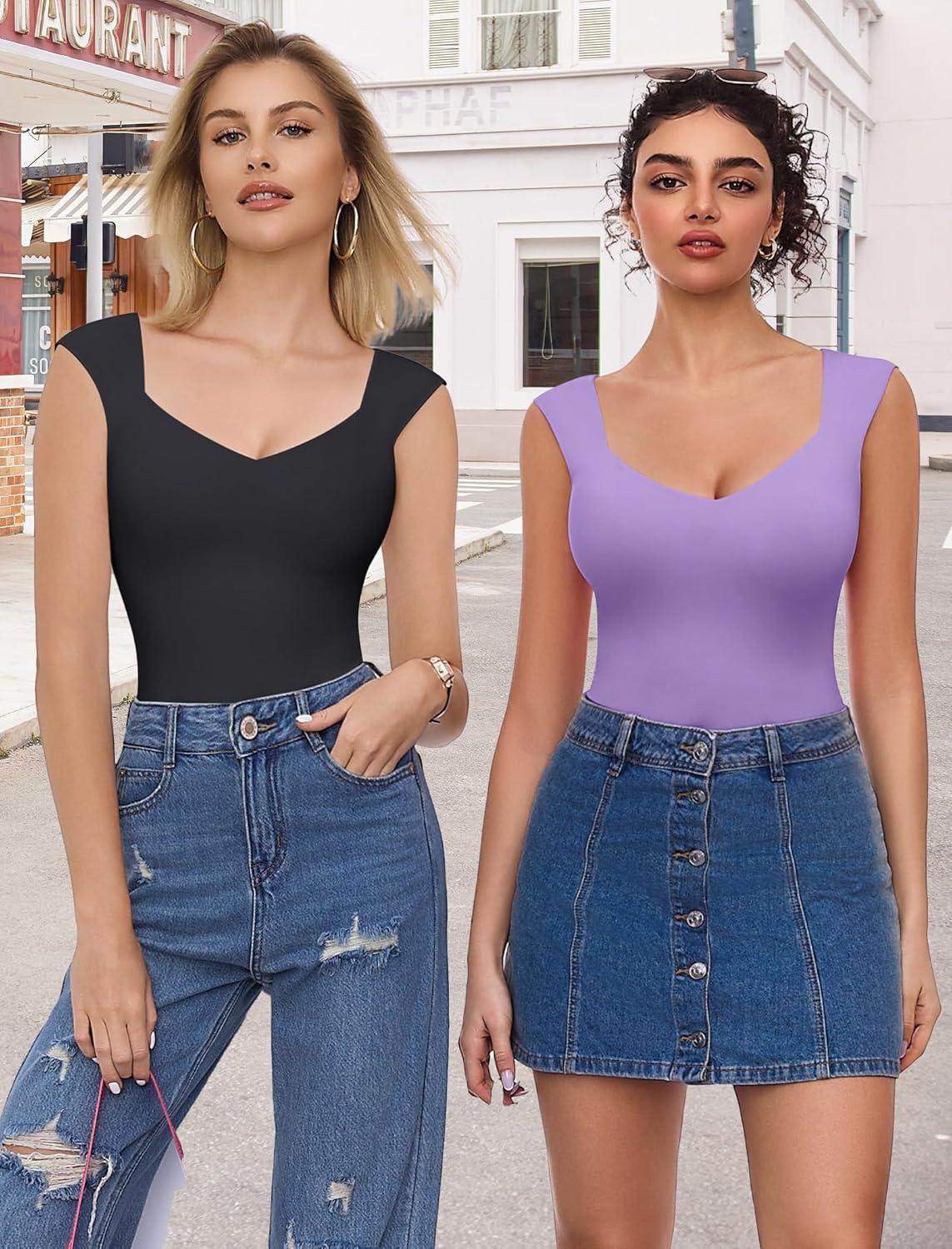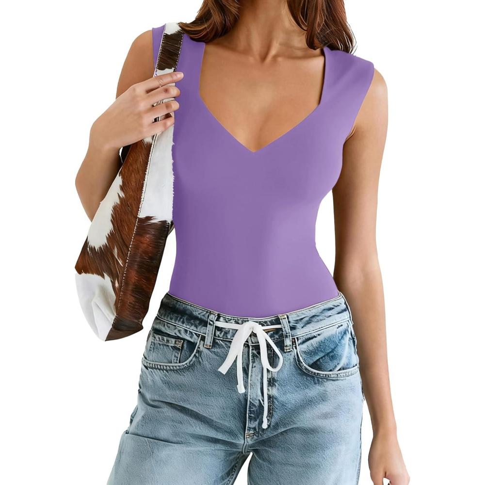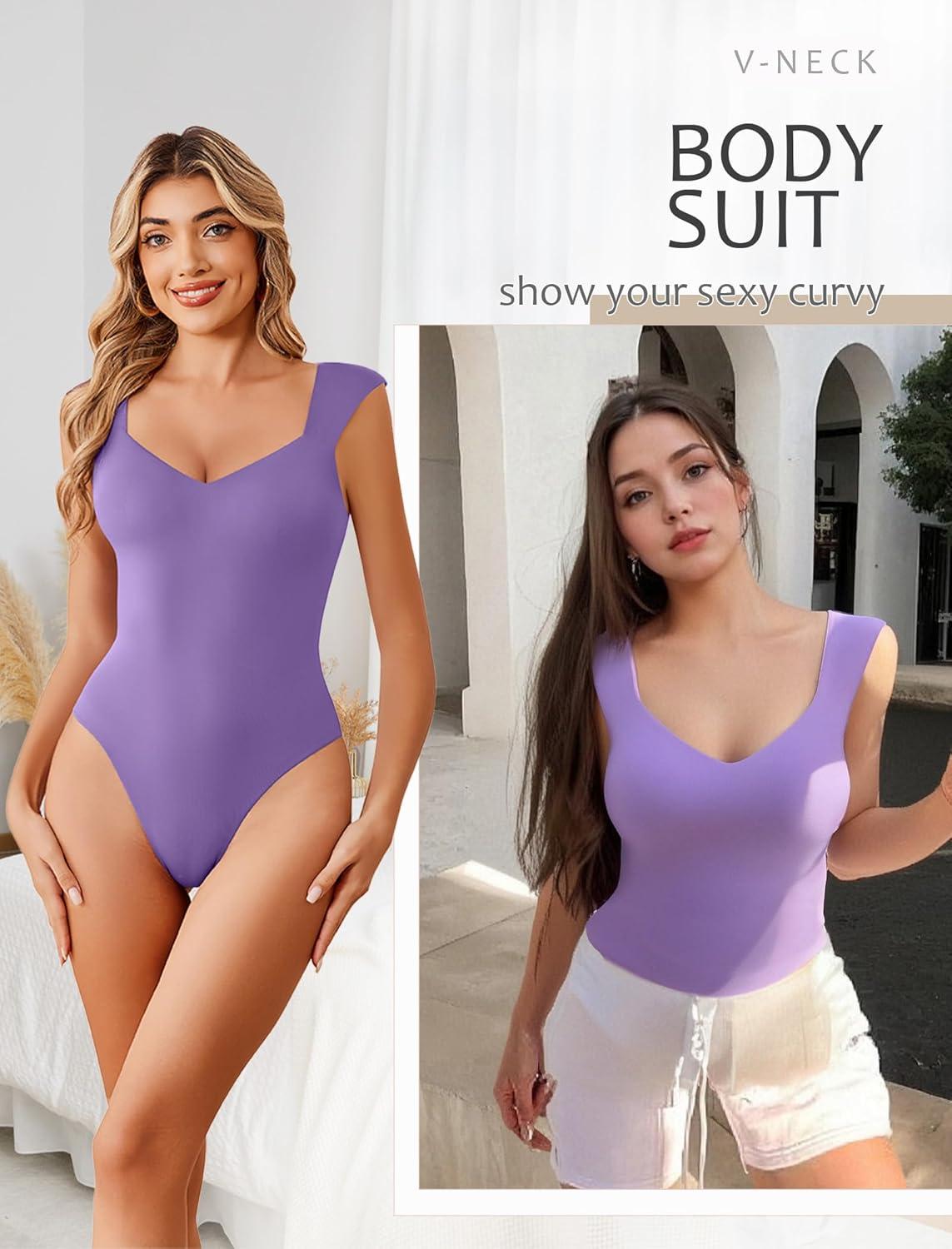 Avidlove Body Suits for Womens Sexy Bodysuit Tank Top Thong Body Suit Seamless Double Lined Going Out Tops(Lilac)