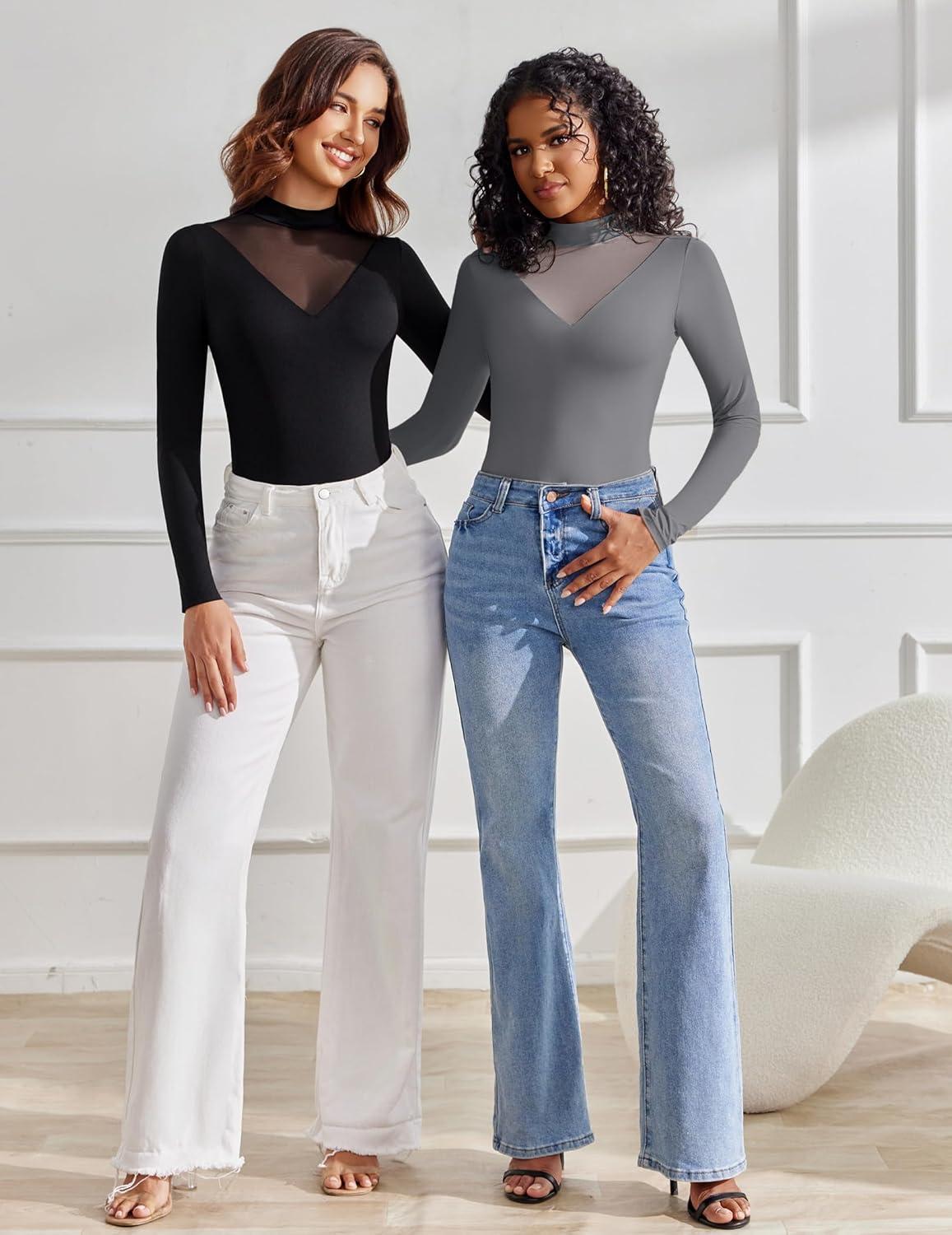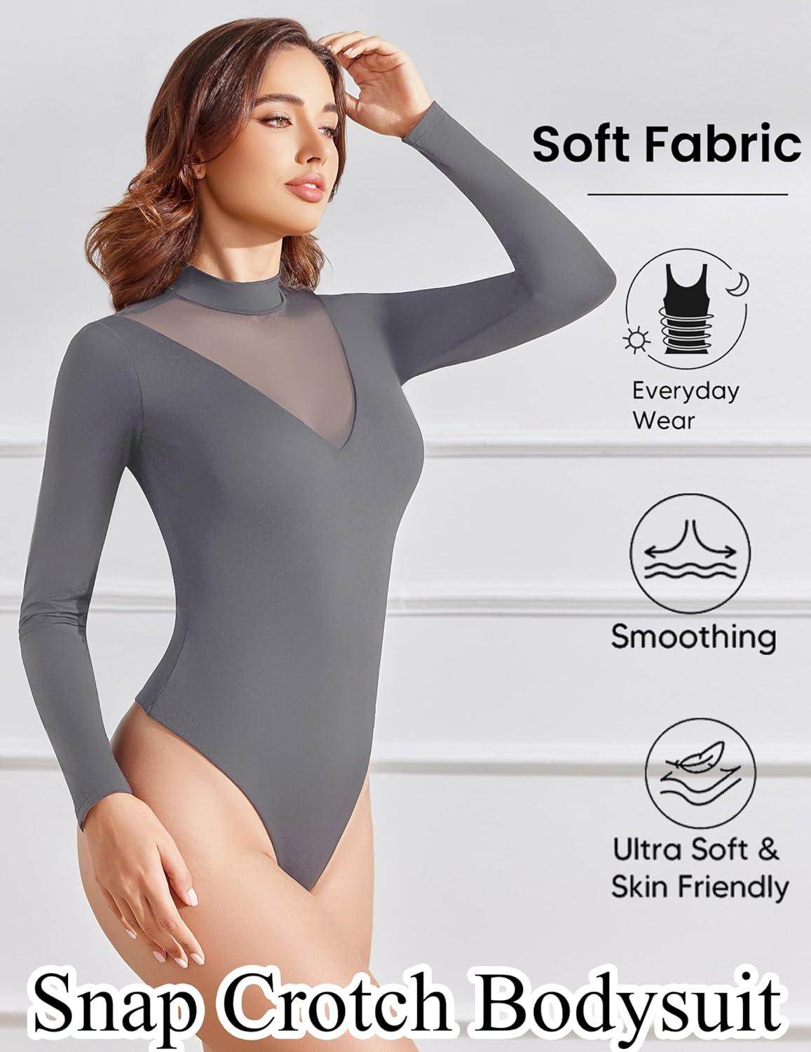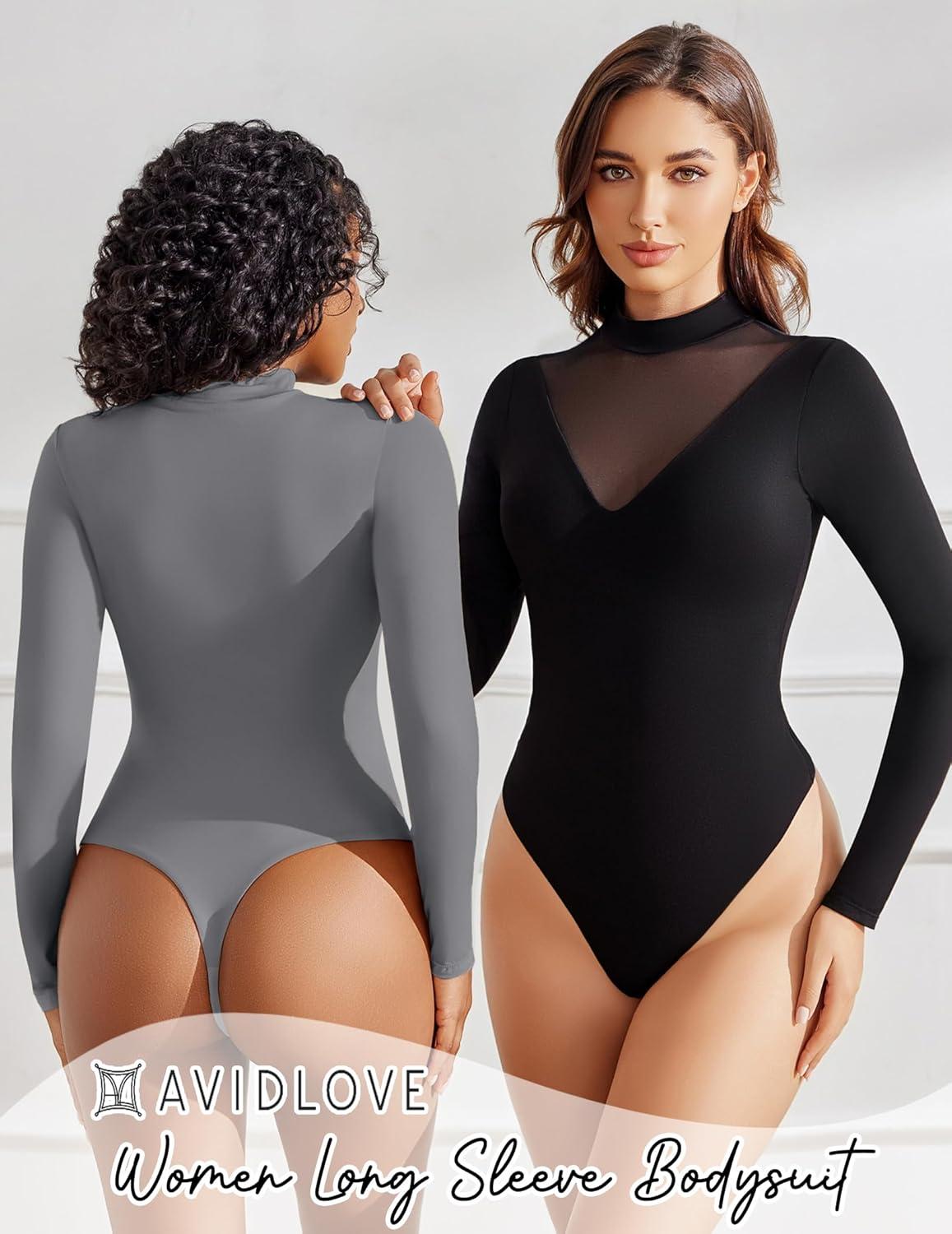 Avidlove Bodysuits for Women Long Sleeve Going Out Tops Mock Turtleneck Body Suits Double Lined Leotard Shirts(Grey)