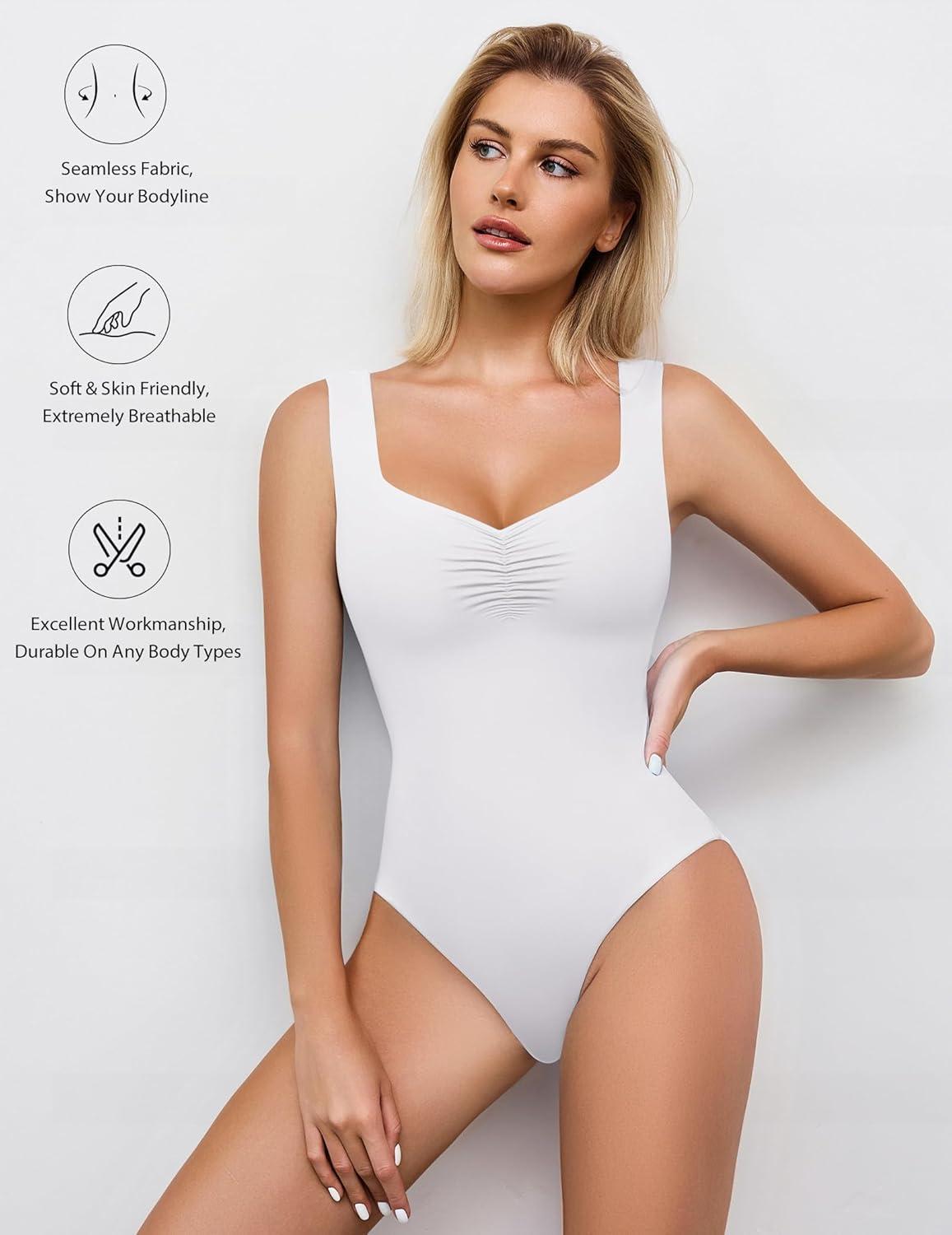 imageAvidlove Bodysuits for Women Sweetheart Neck Ruched Body Suit Seamless Double Lined Tank Top SlimmingWhite