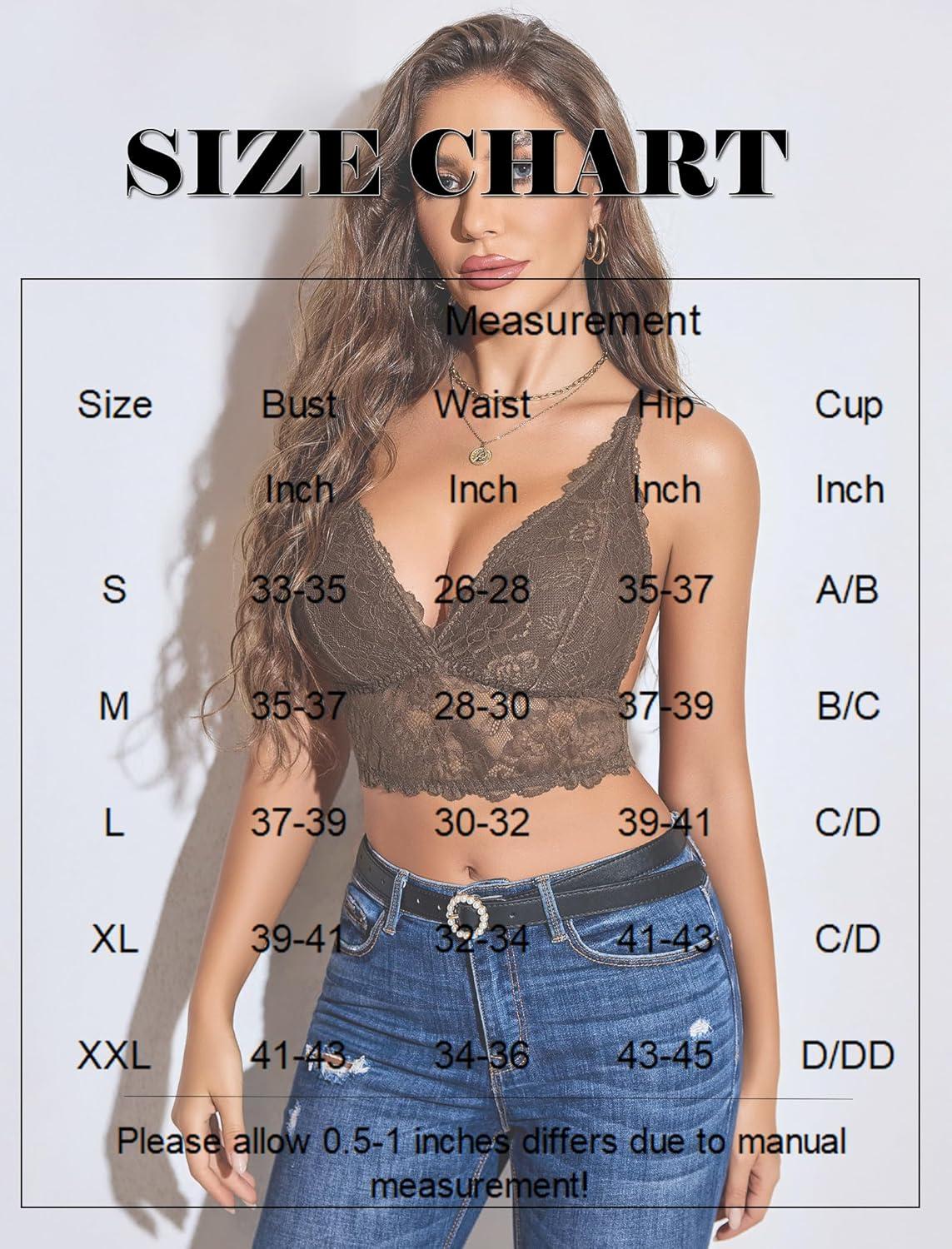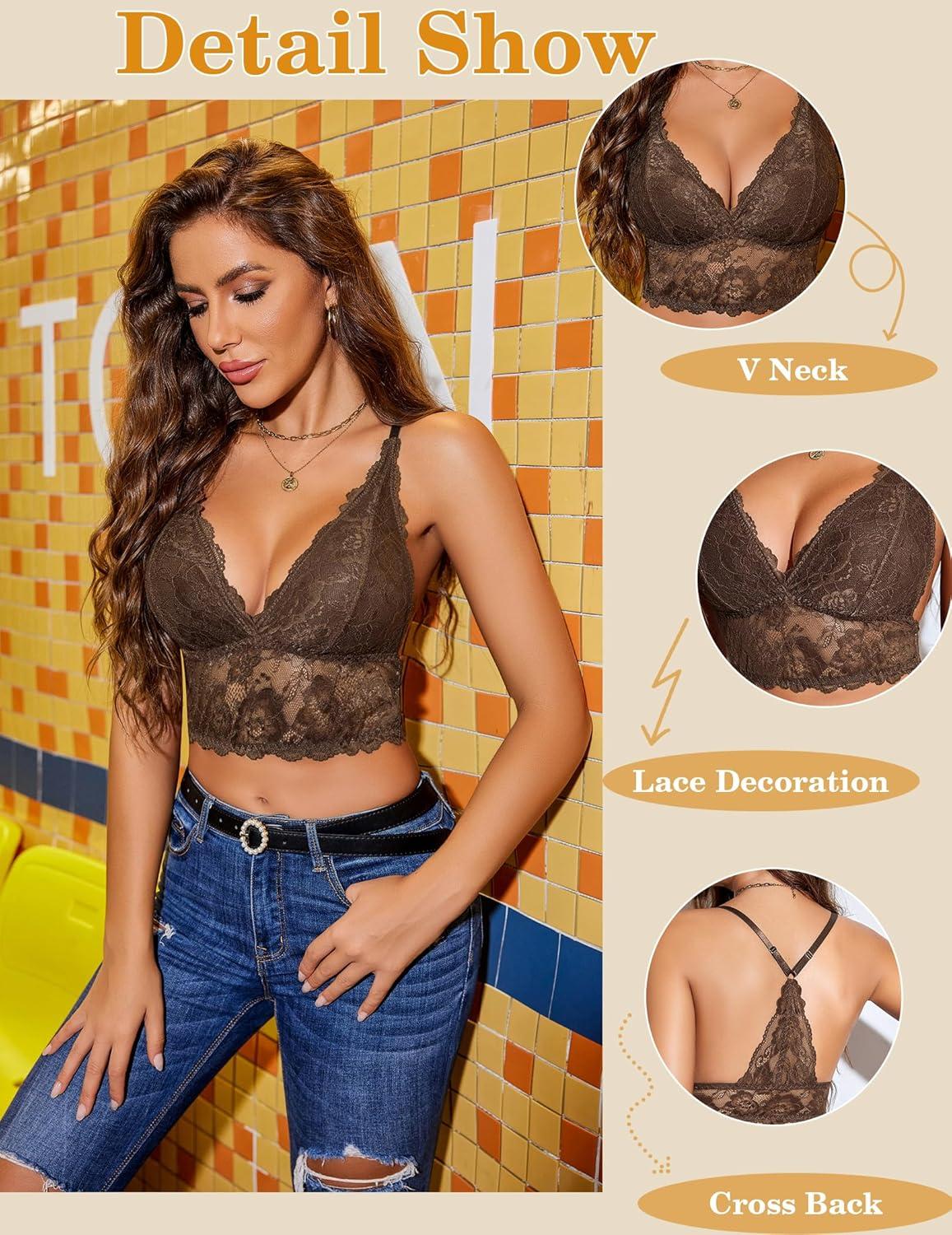 Avidlove Bralettes for Women Lace Wireless Bra V Neck Racerback Crop Top Adjustable Lingerie No Padded(Brown)