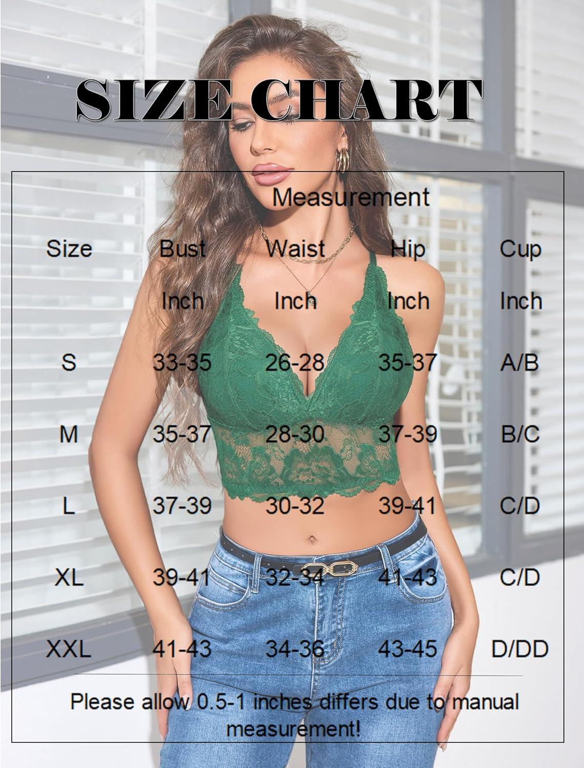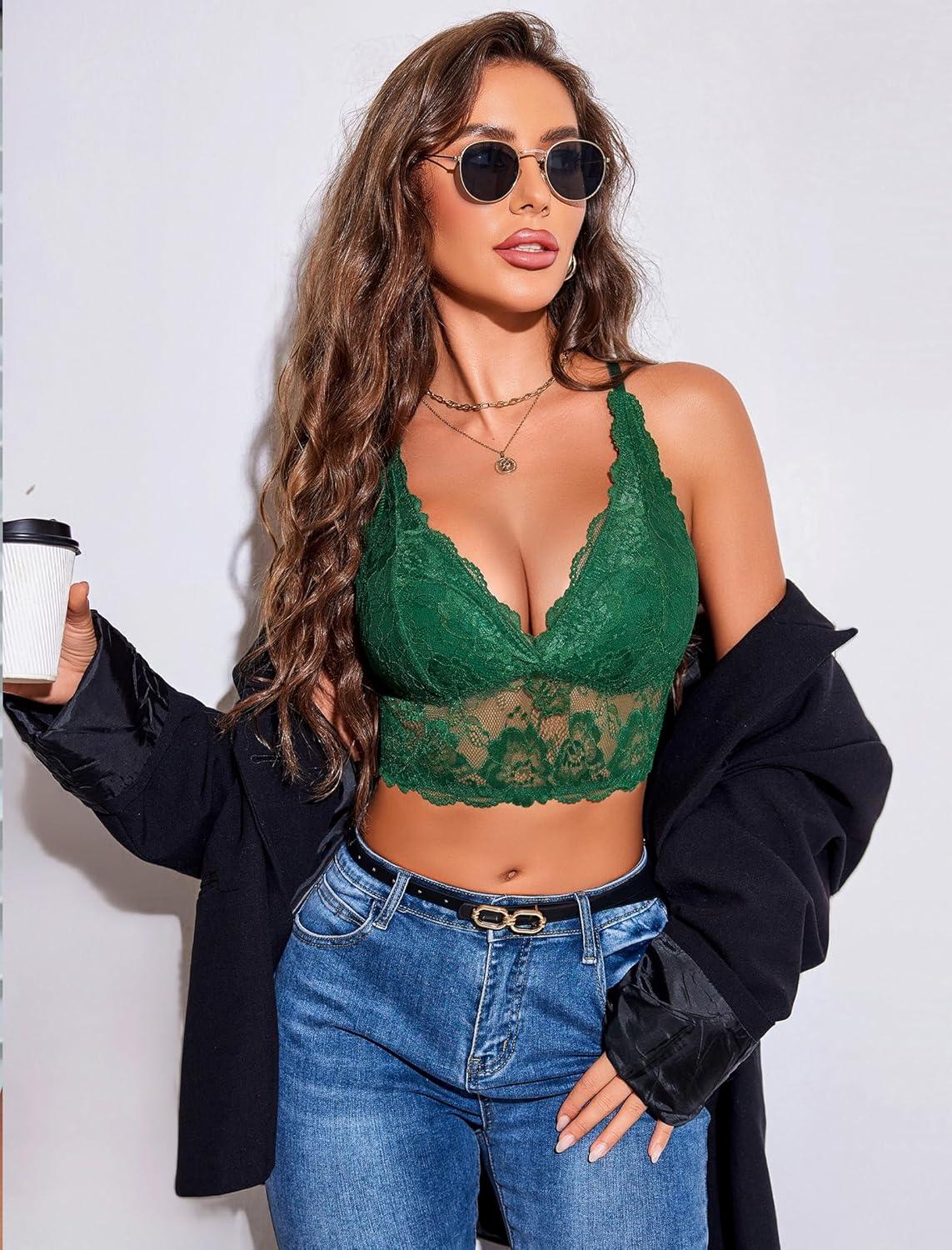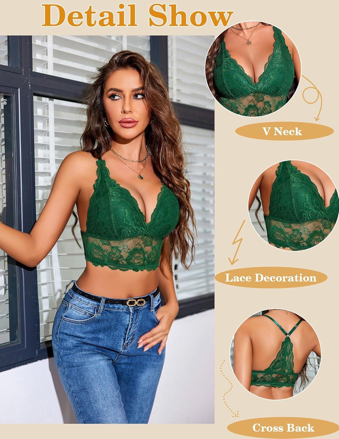 Avidlove Bralettes for Women Lace Wireless Bra V Neck Racerback Crop Top Adjustable Lingerie No Padded(Green)