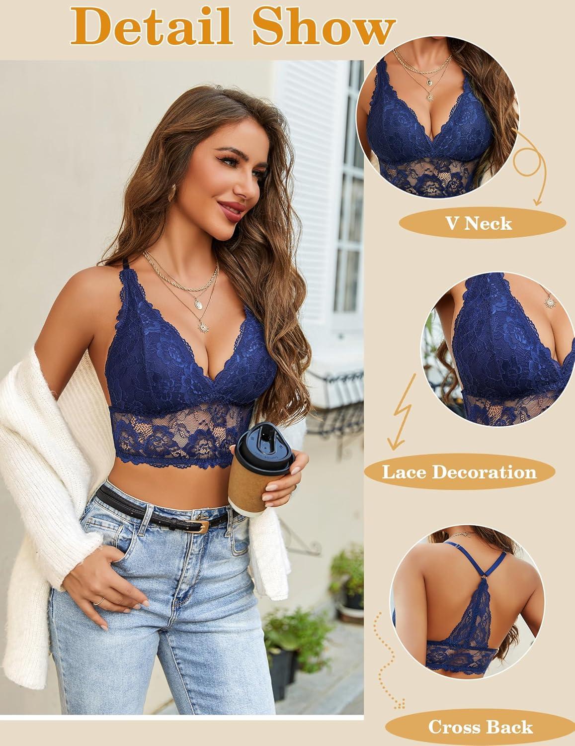 Don’t miss out on our limited-time offer: buy Avidlove Bralettes for Women Lace Wireless Bra V Neck Racerback Crop Top Adjustable Lingerie No Padded(Navy Blue), get {accessory} free!