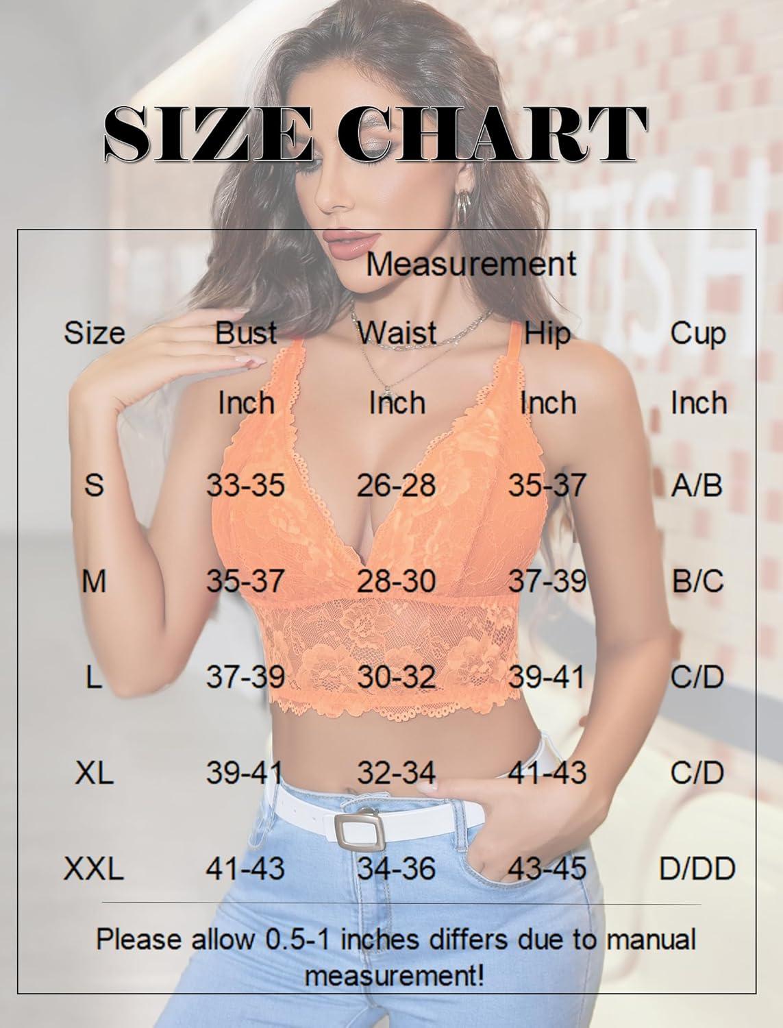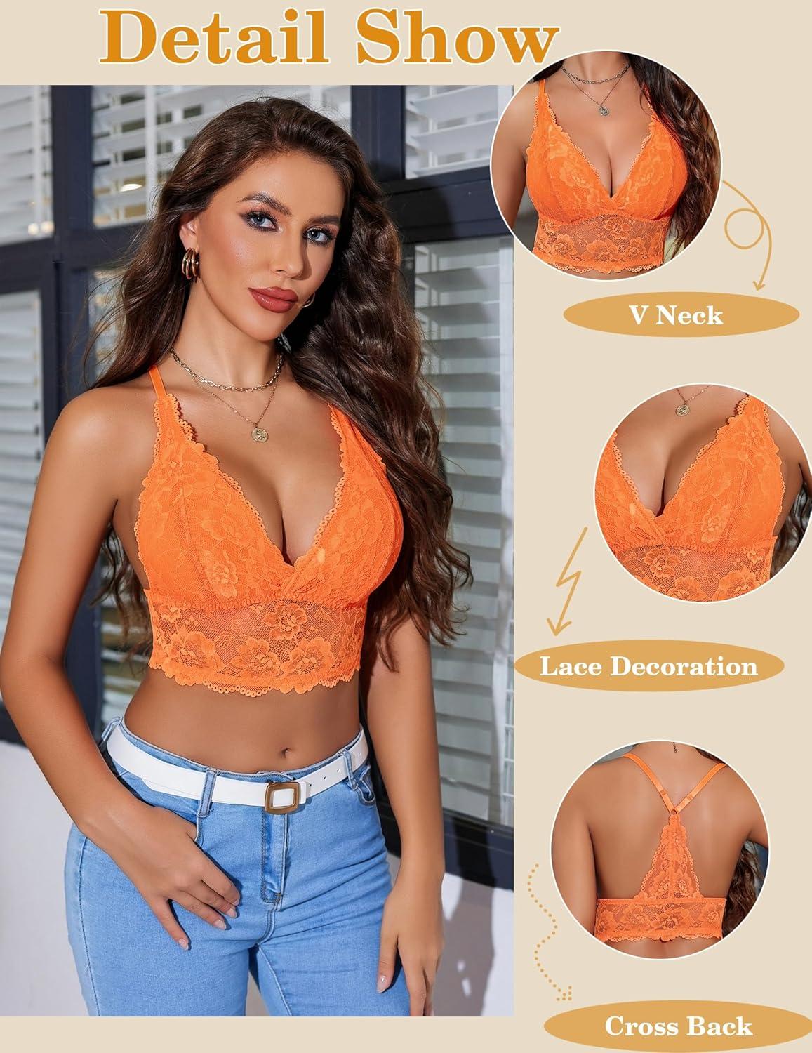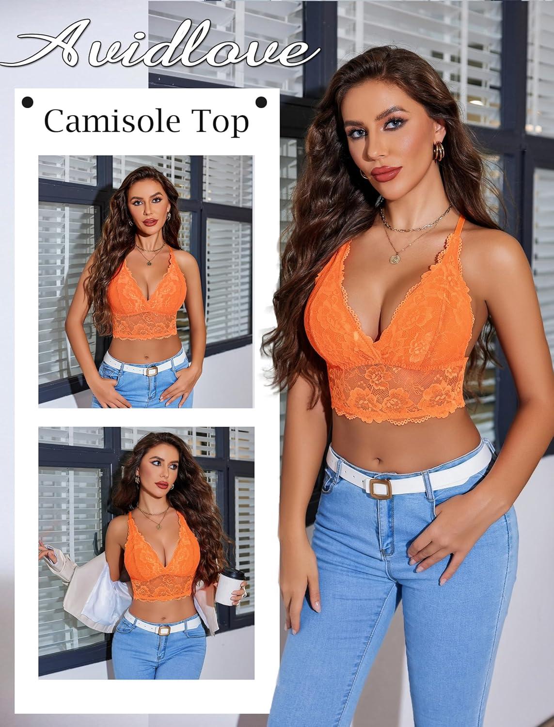 Avidlove Bralettes for Women Lace Wireless Bra V Neck Racerback Crop Top Adjustable Lingerie No Padded(Orange)