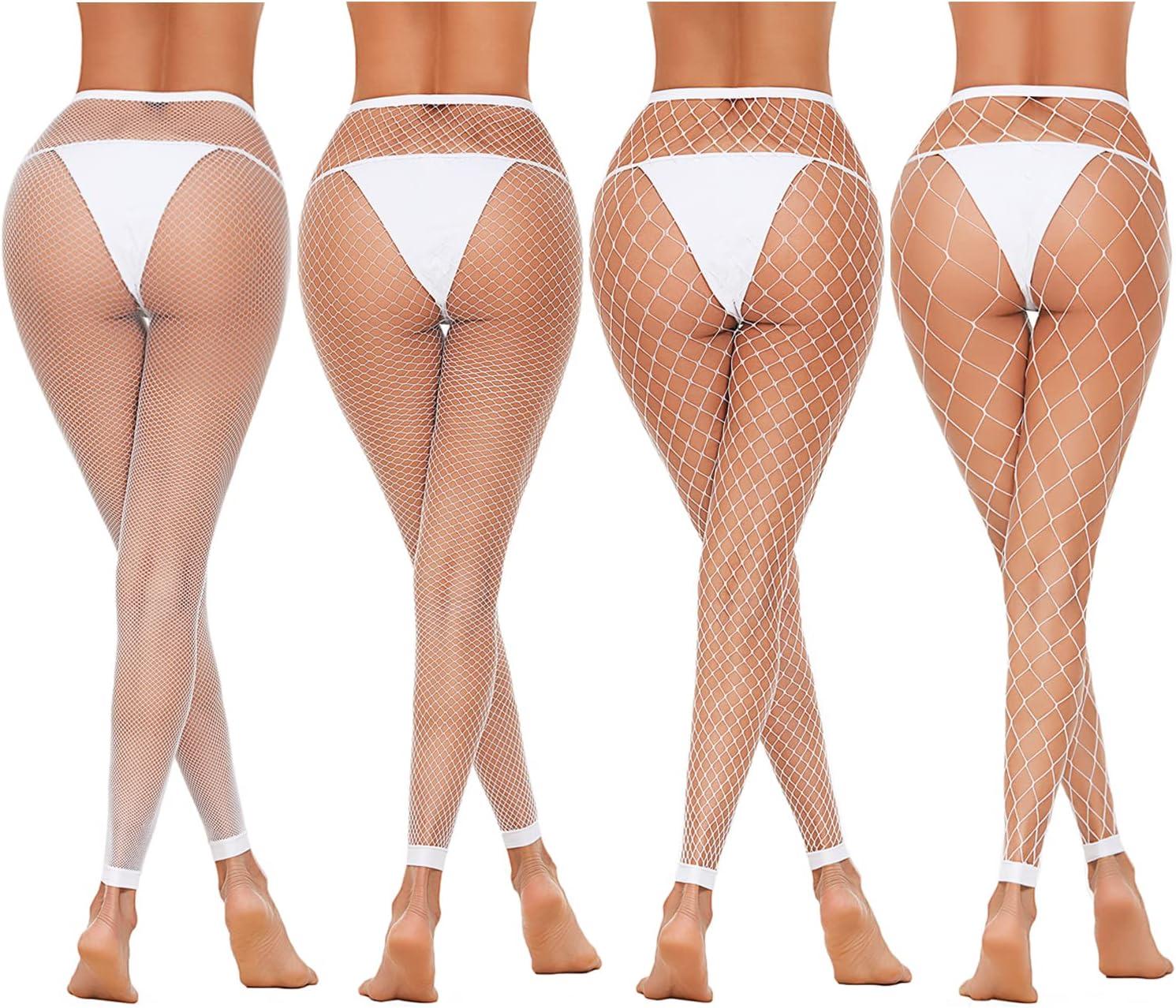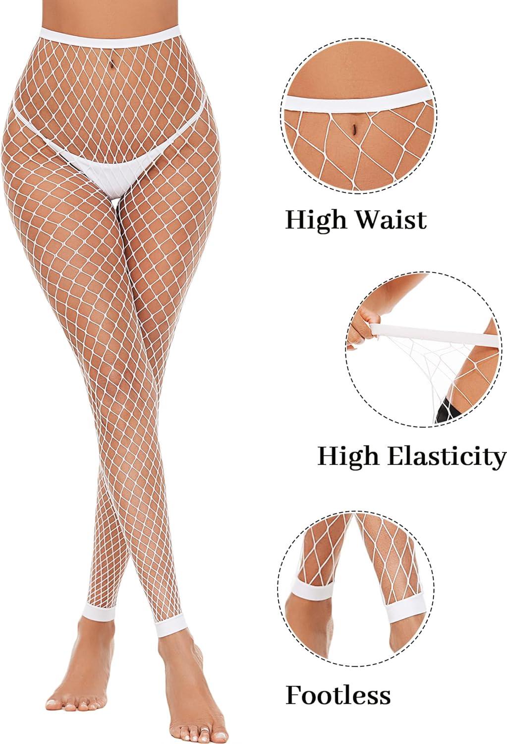 imageAvidlove Fishnet Stockings Footless High Waist Fishnets Tights Pantyhose for Women1white4 Pairs