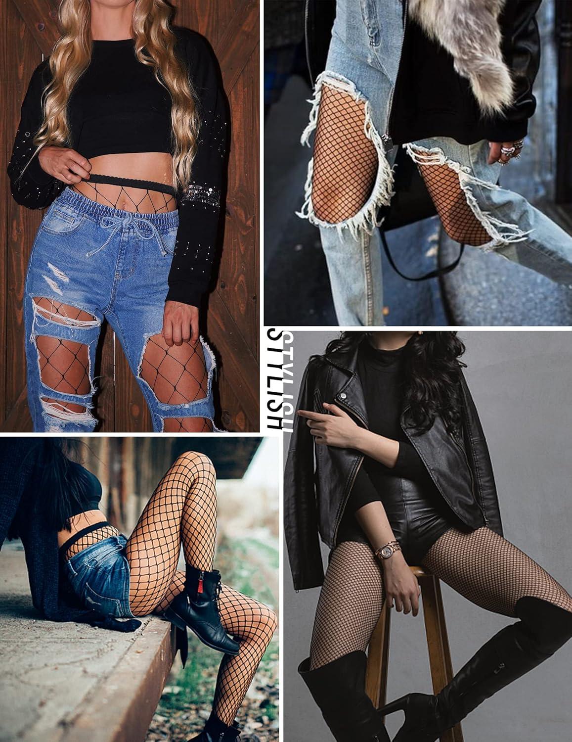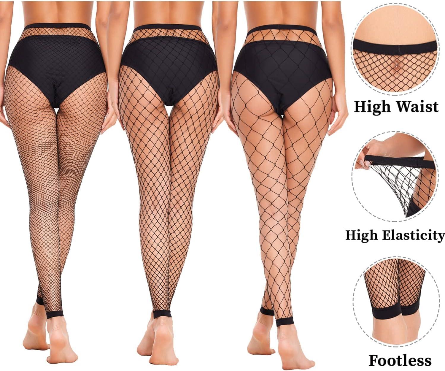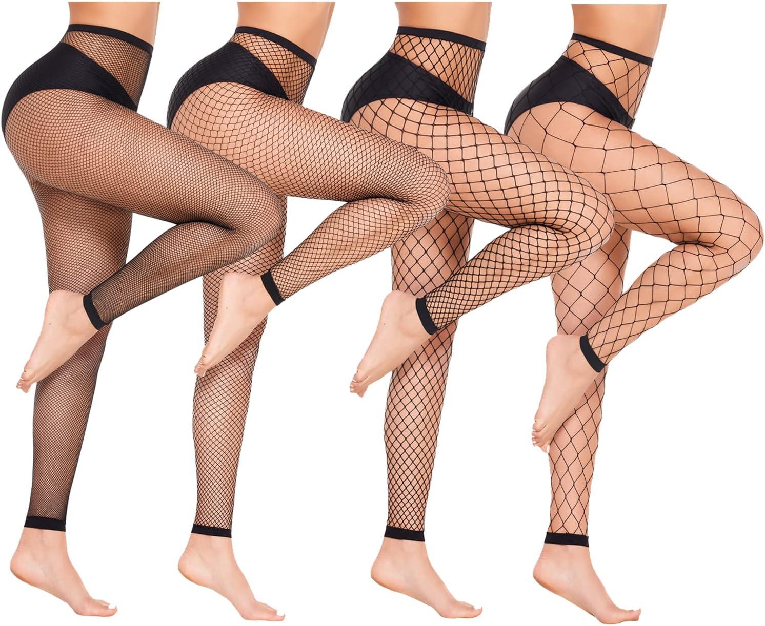 imageAvidlove Fishnet Stockings Footless High Waist Fishnets Tights Pantyhose for WomenBlack4 Pairs