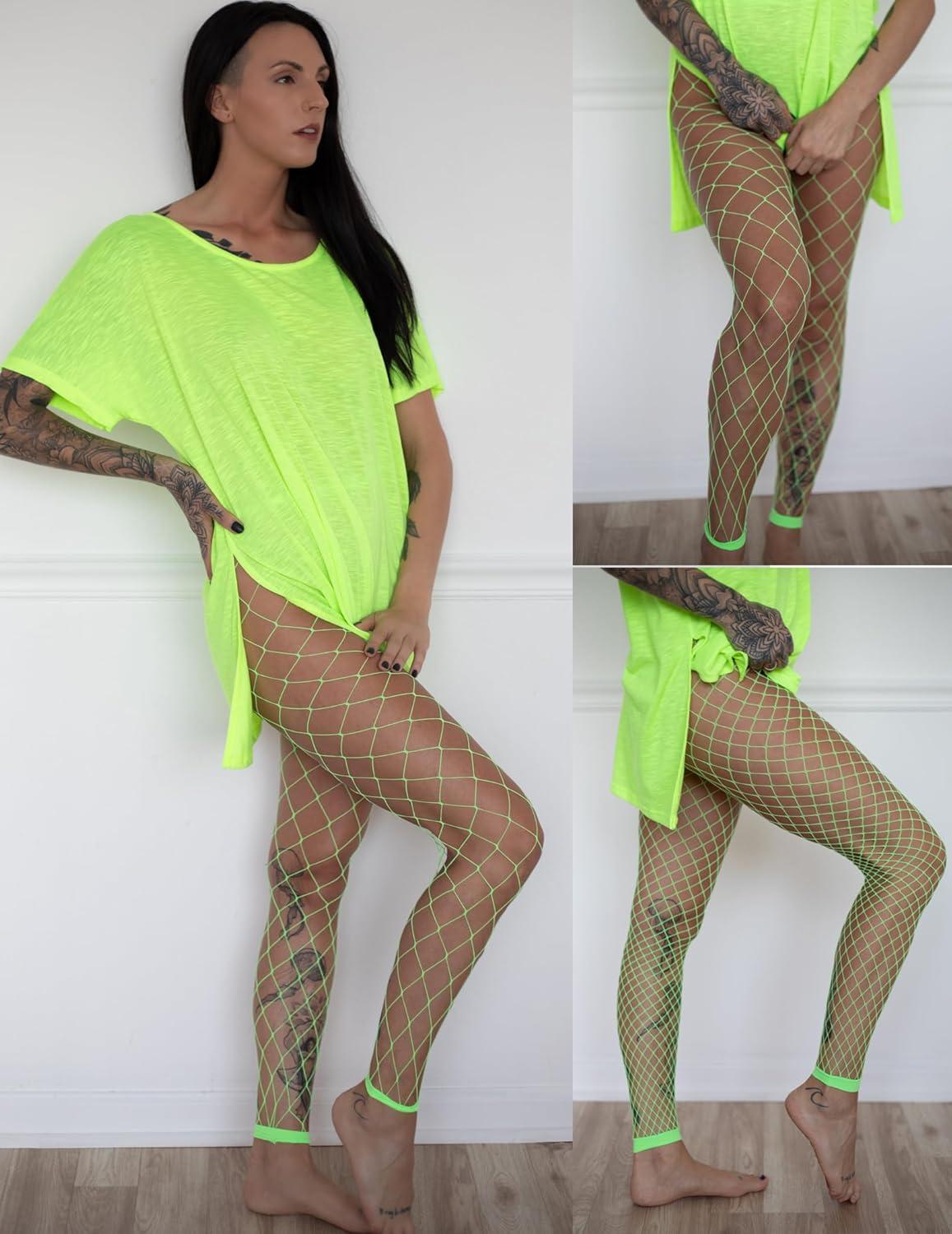 imageAvidlove Fishnet Stockings Footless High Waist Fishnets Tights Pantyhose for WomenNeon Green Al