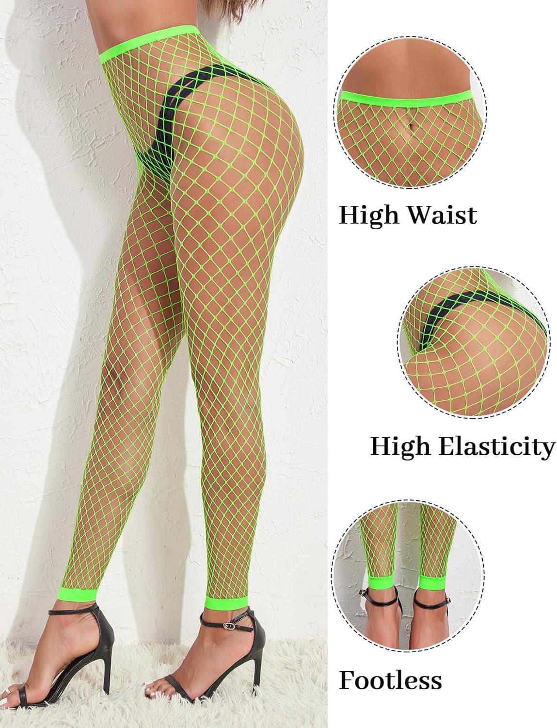 Avidlove Fishnet Stockings Footless High Waist Fishnets Tights Pantyhose for Women(Neon Green-gp)