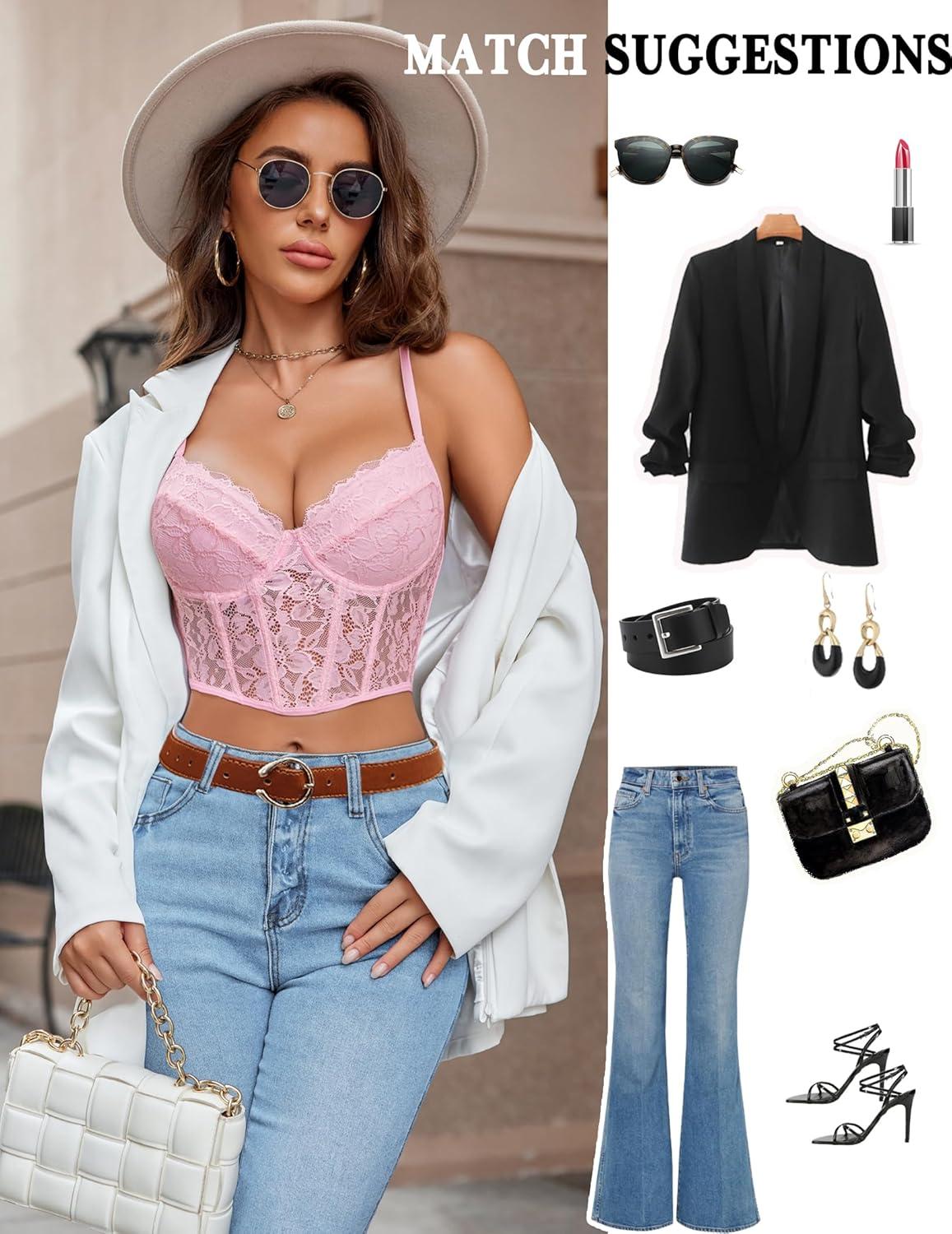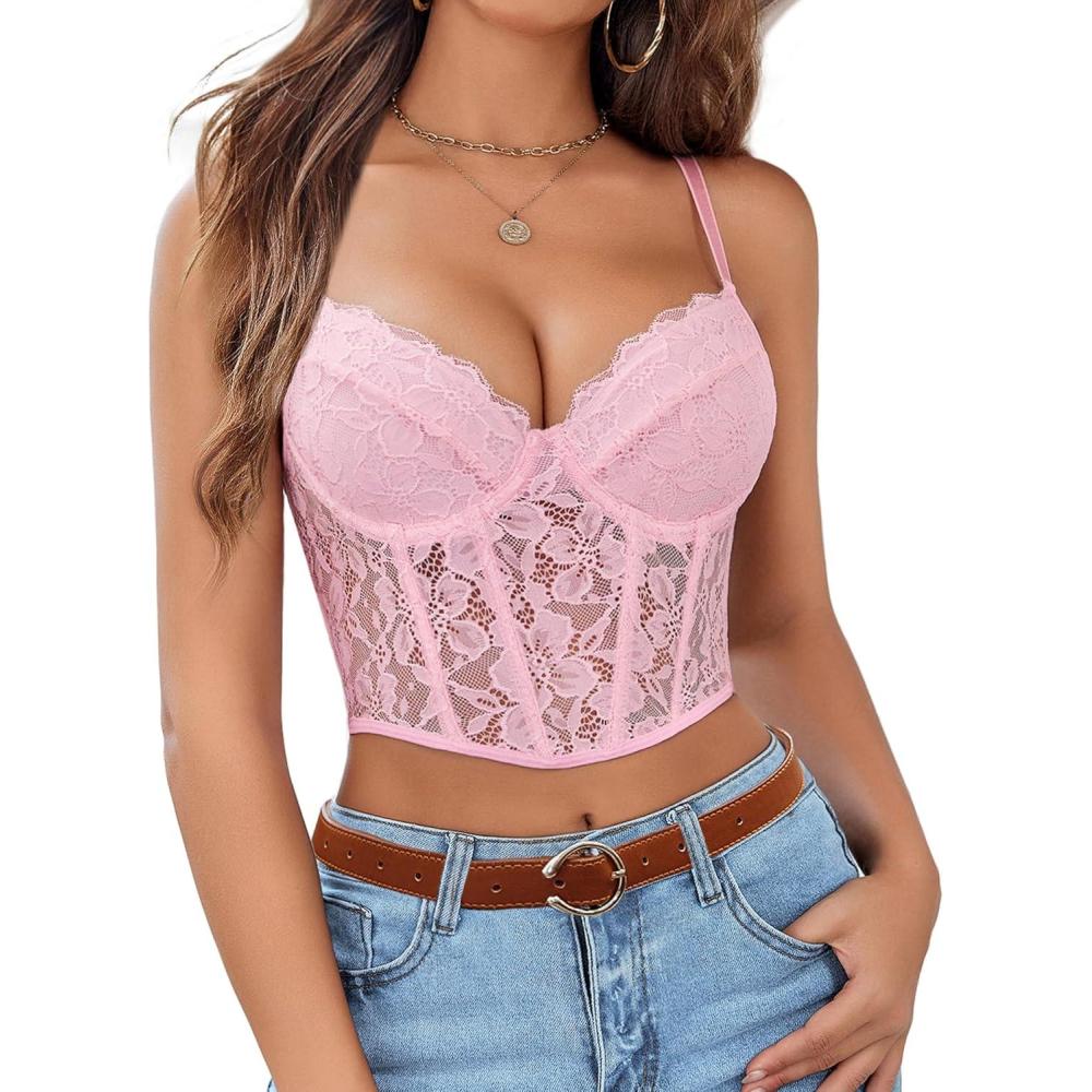 imageAvidlove Lace Bralette for Women V Neck Bustier Corset Tops with Underwired Racerback Adjustable Strap Crop TopDark Pink
