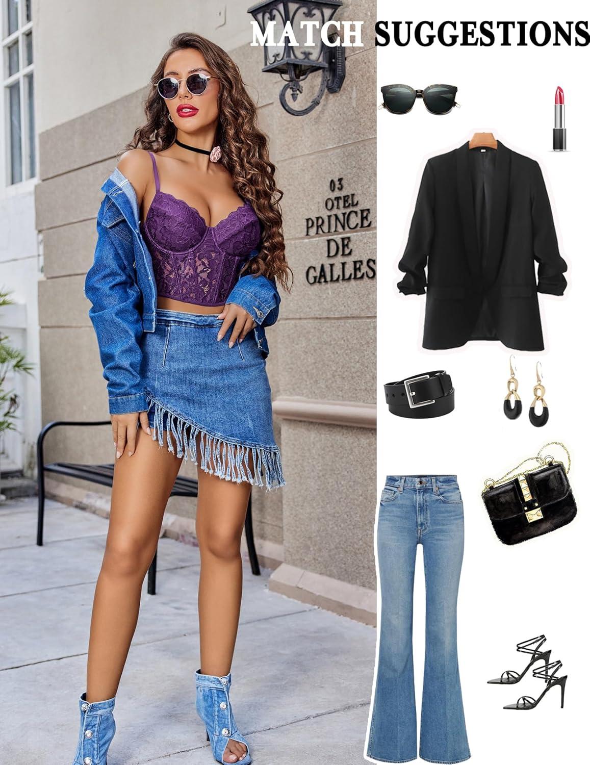 Avidlove Lace Bralette for Women V Neck Bustier Corset Tops with Underwired Racerback Adjustable Strap Crop Top(Purple)