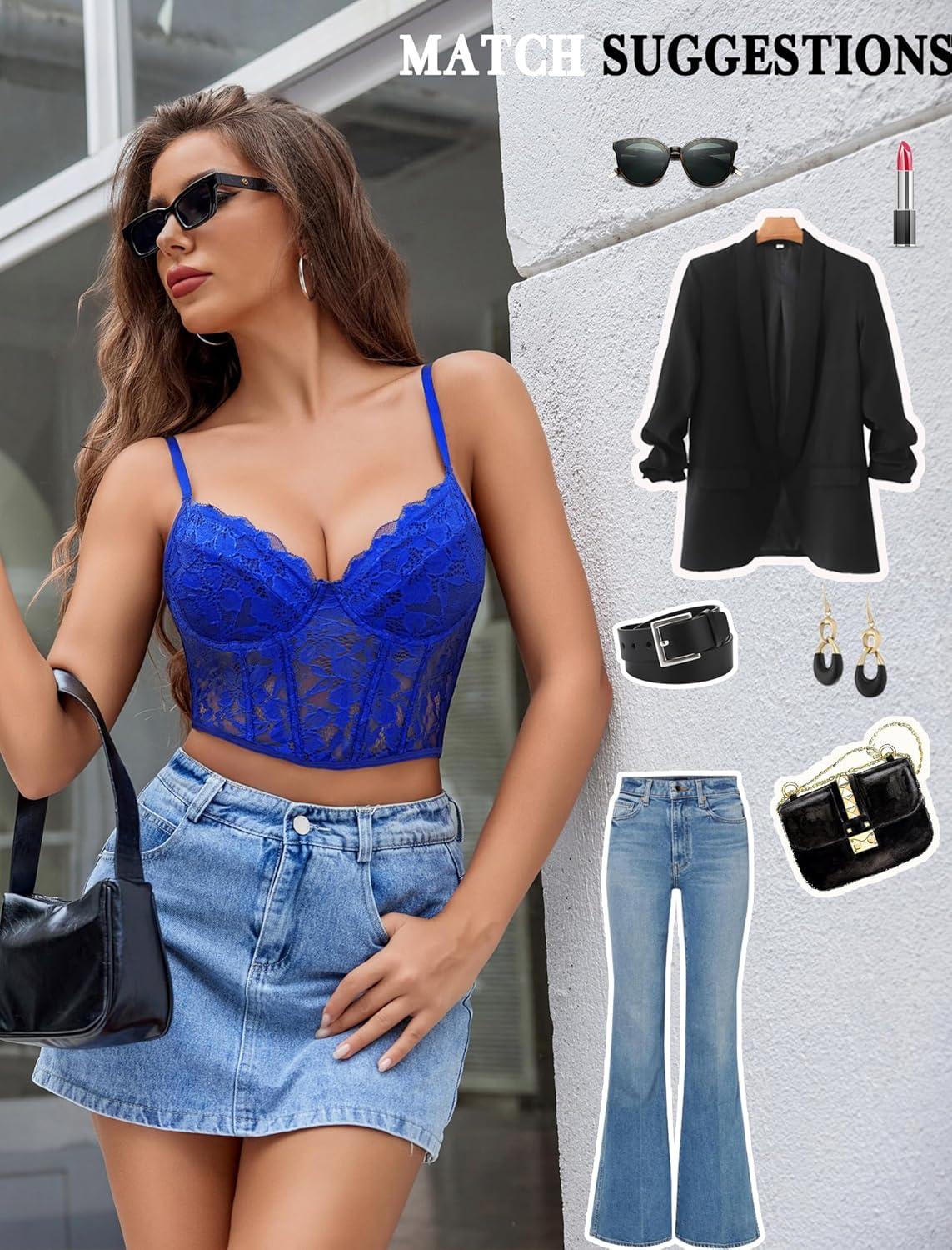 Save up to 40% on Avidlove Lace Bralette for Women V Neck Bustier Corset Tops with Underwired Racerback Adjustable Strap Crop Top(Royal Blue) styles during our end-of-season sale.