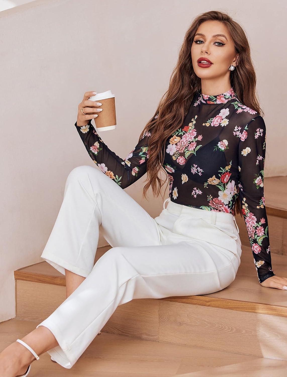 imageAvidlove Mesh Top for Women Long Sleeve See Through Shirt Mock Neck Sheer Blouse XSXXLBf298
