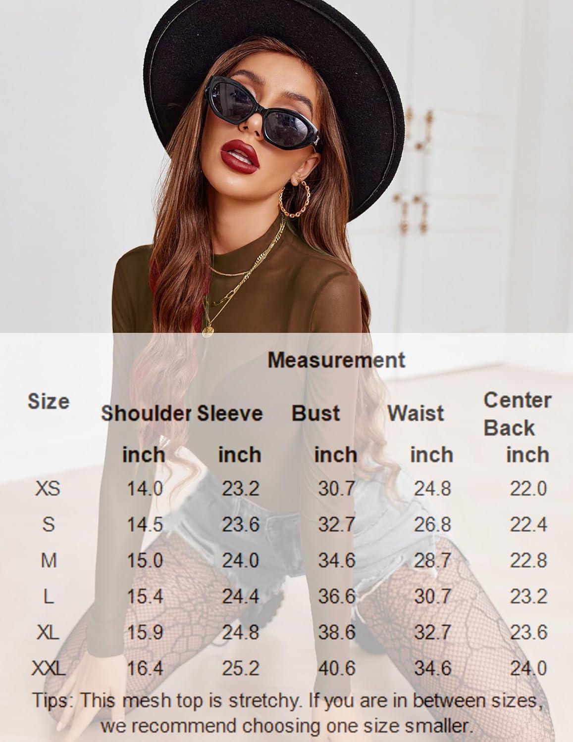 Avidlove Mesh Top for Women Long Sleeve See Through Shirt Mock Neck Sheer Blouse XS-XXL(Bf298)