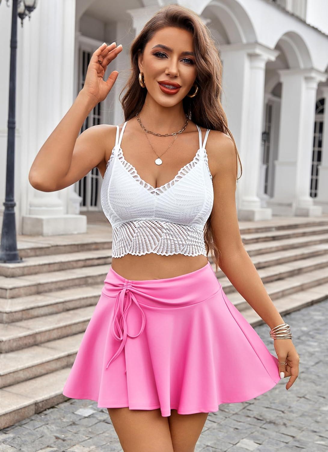 Avidlove Mini Skirt for Women Pleated Drawstring High Waist Skater Skirt Sexy Lingerie Skirts S-XXL(Pink)