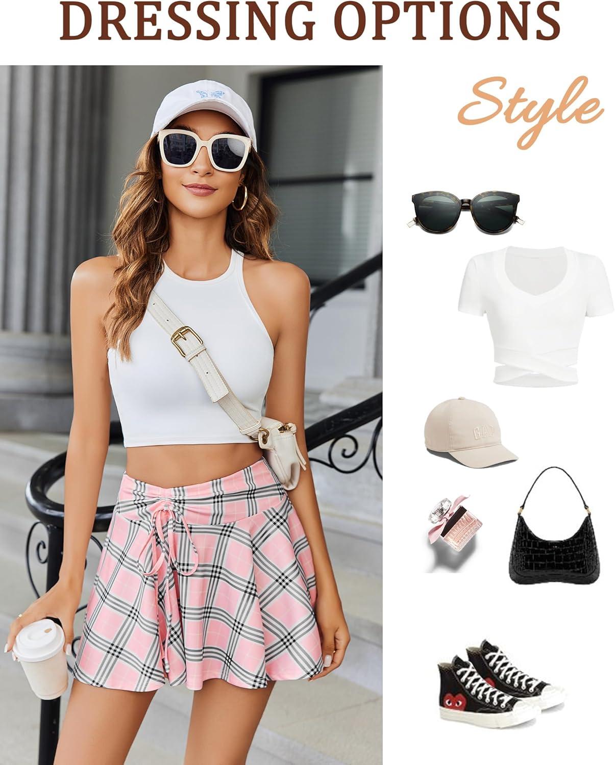 imageAvidlove Mini Skirt for Women Pleated Drawstring High Waist Skater Skirt Sexy Lingerie Skirts SXXLPink Plaid