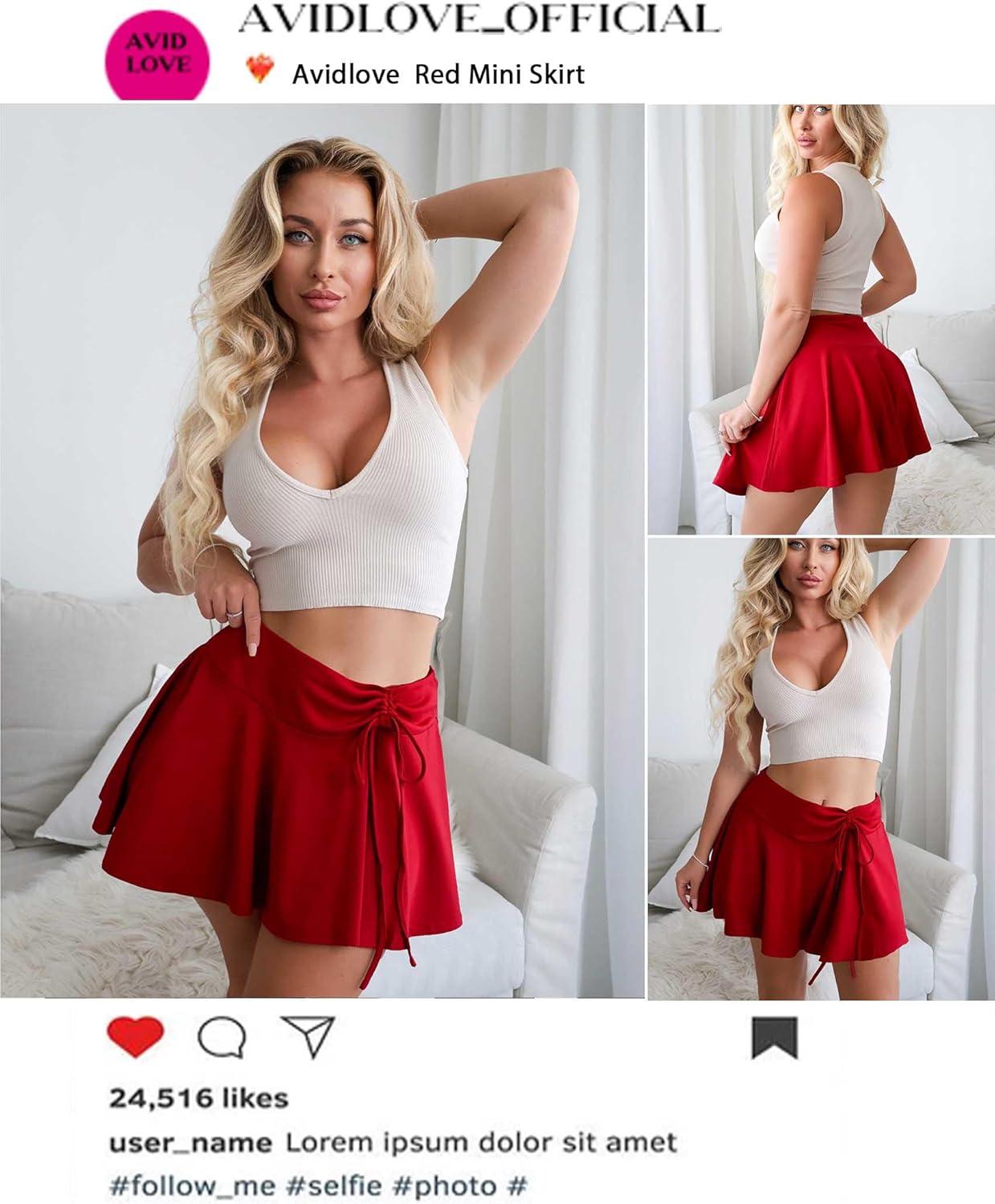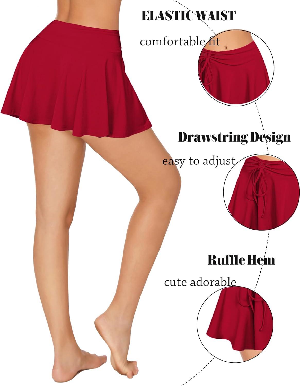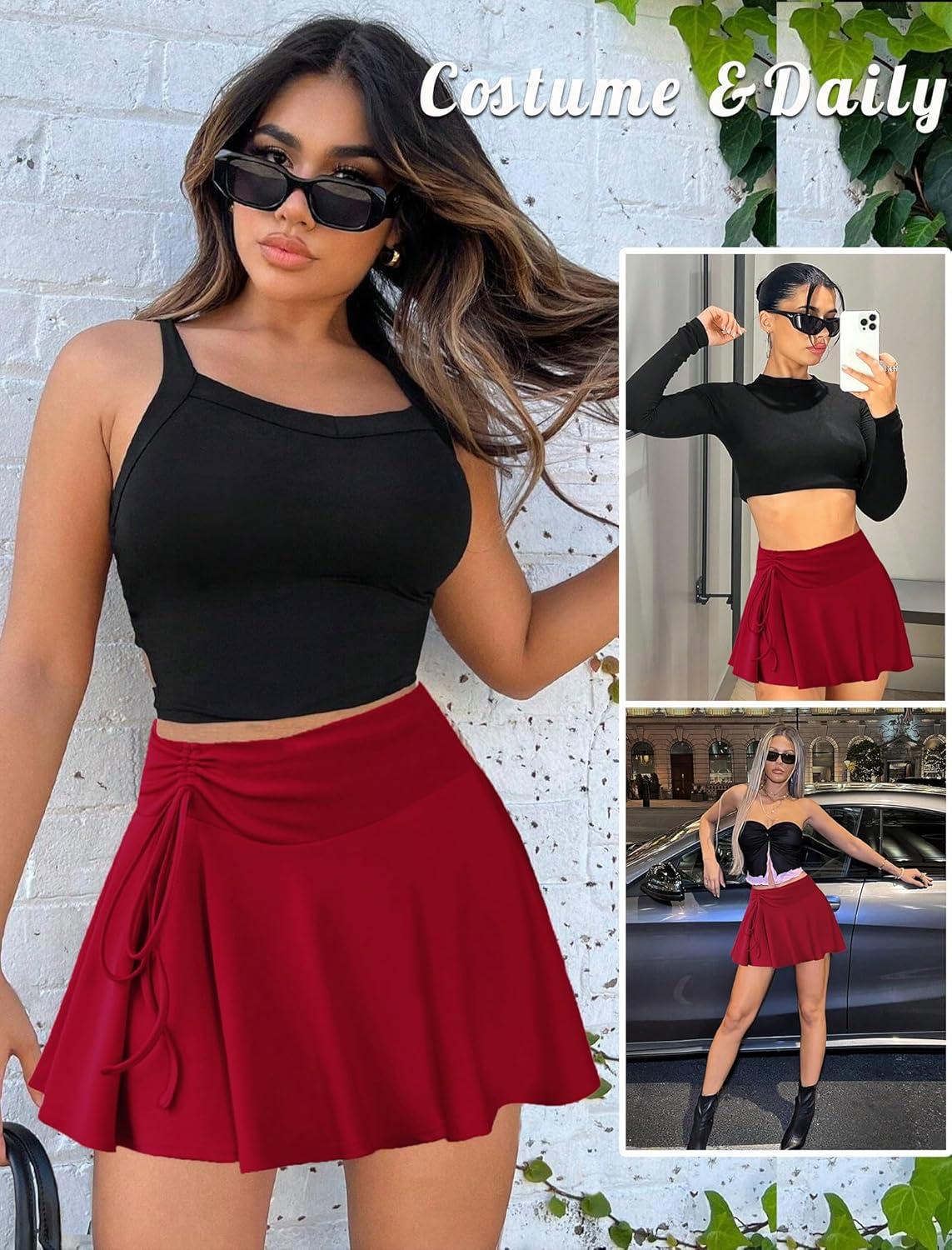 Avidlove Mini Skirt for Women Pleated Drawstring High Waist Skater Skirt Sexy Lingerie Skirts S-XXL(Wine Red)