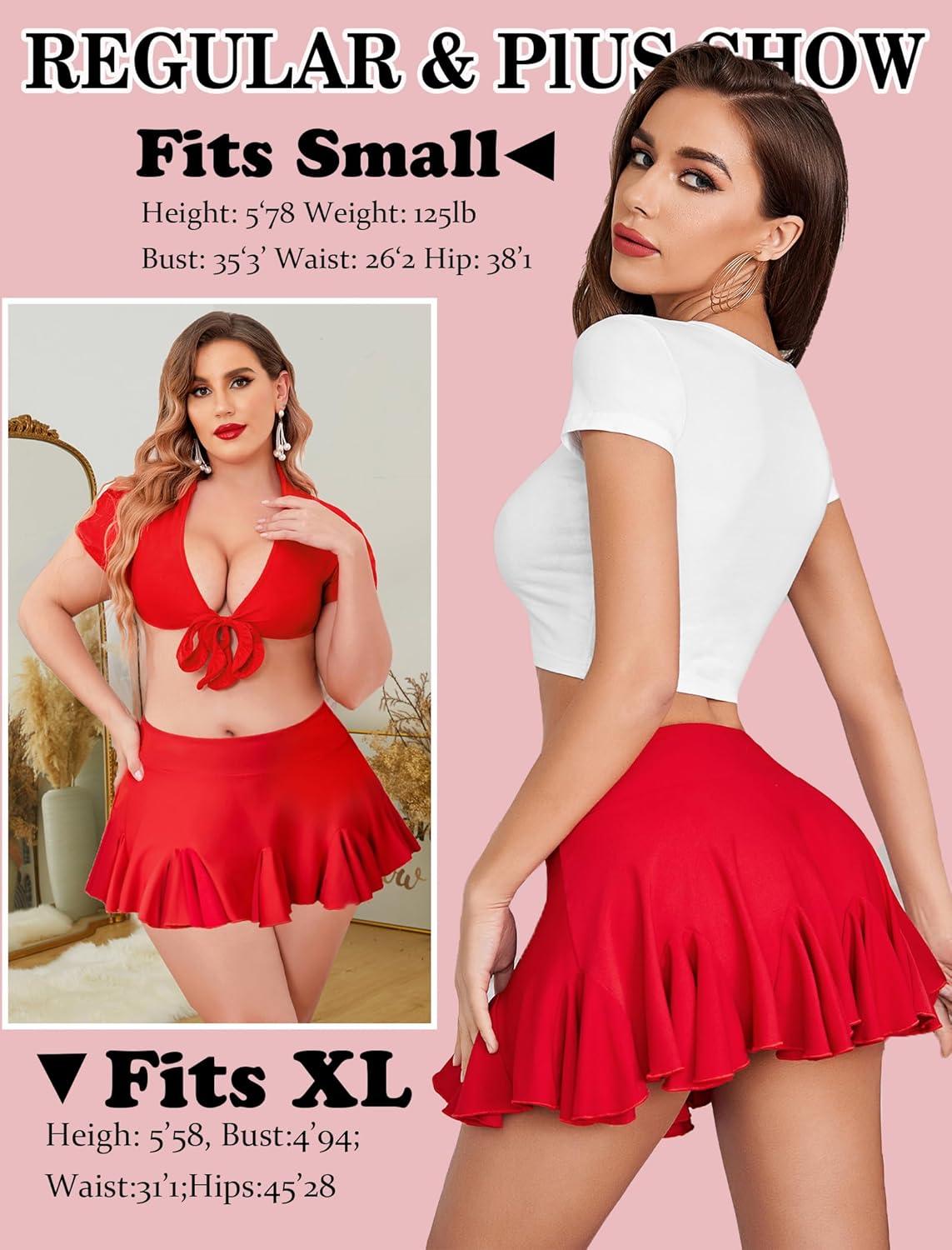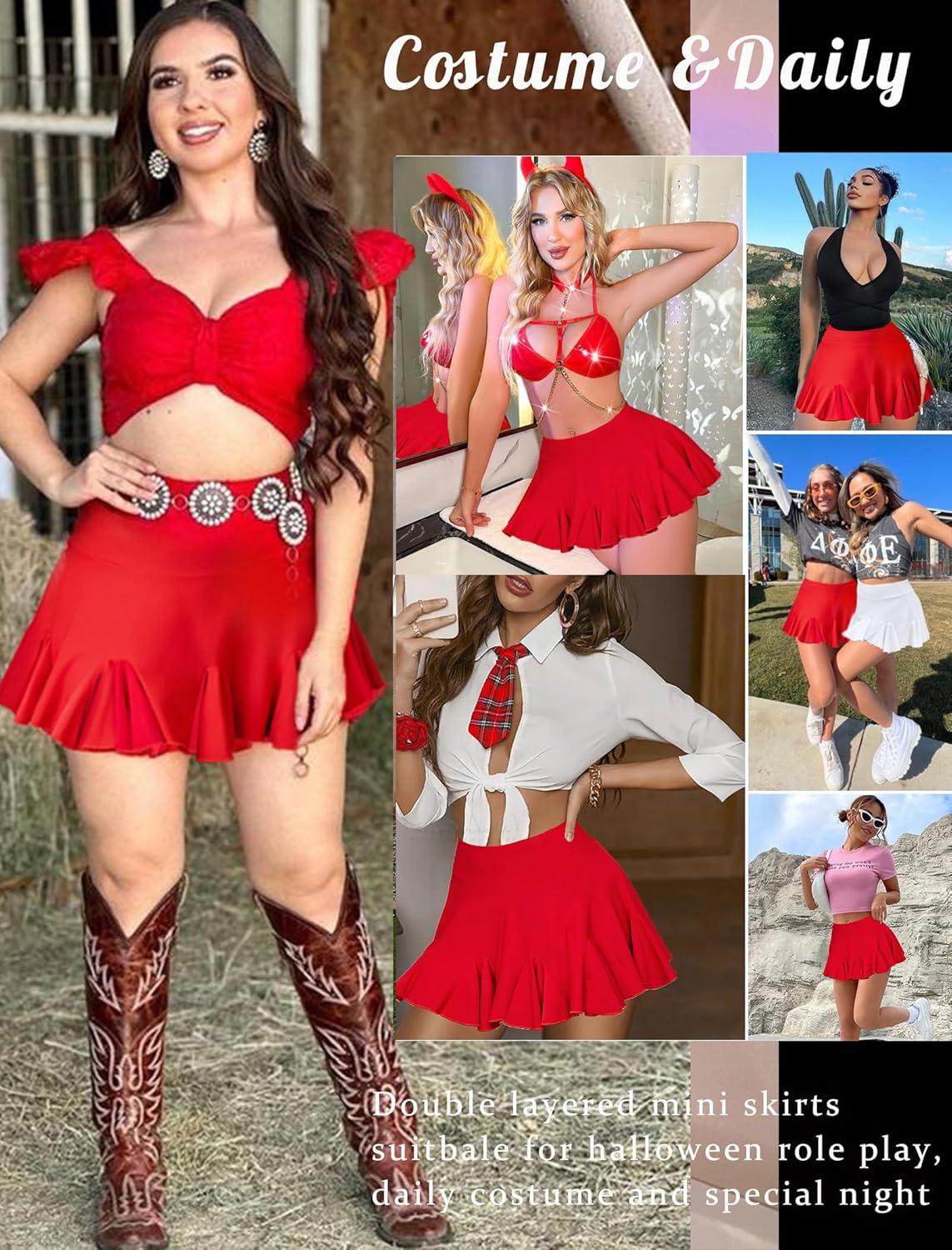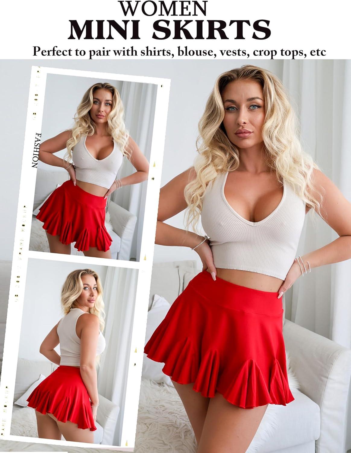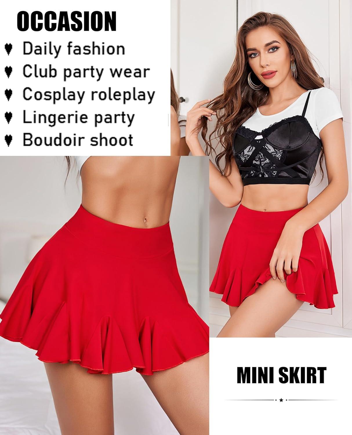 Avidlove Mini Skirt for Women Sexy Pleated Skirts High Waist Skater Skirt Ruffle Lingerie Skirts(Red)