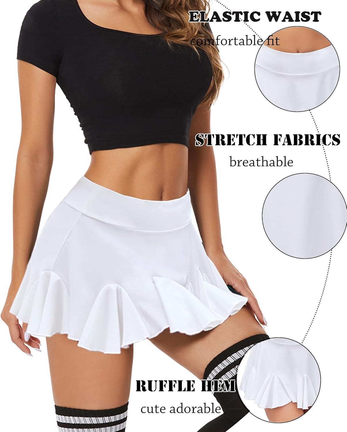 Avidlove Mini Skirt for Women Sexy Pleated Skirts High Waist Skater Skirt Ruffle Lingerie Skirts(White)