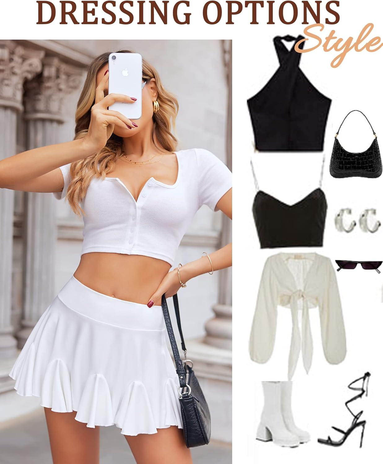 imageAvidlove Mini Skirt for Women Sexy Pleated Skirts High Waist Skater Skirt Ruffle Lingerie SkirtsWhite