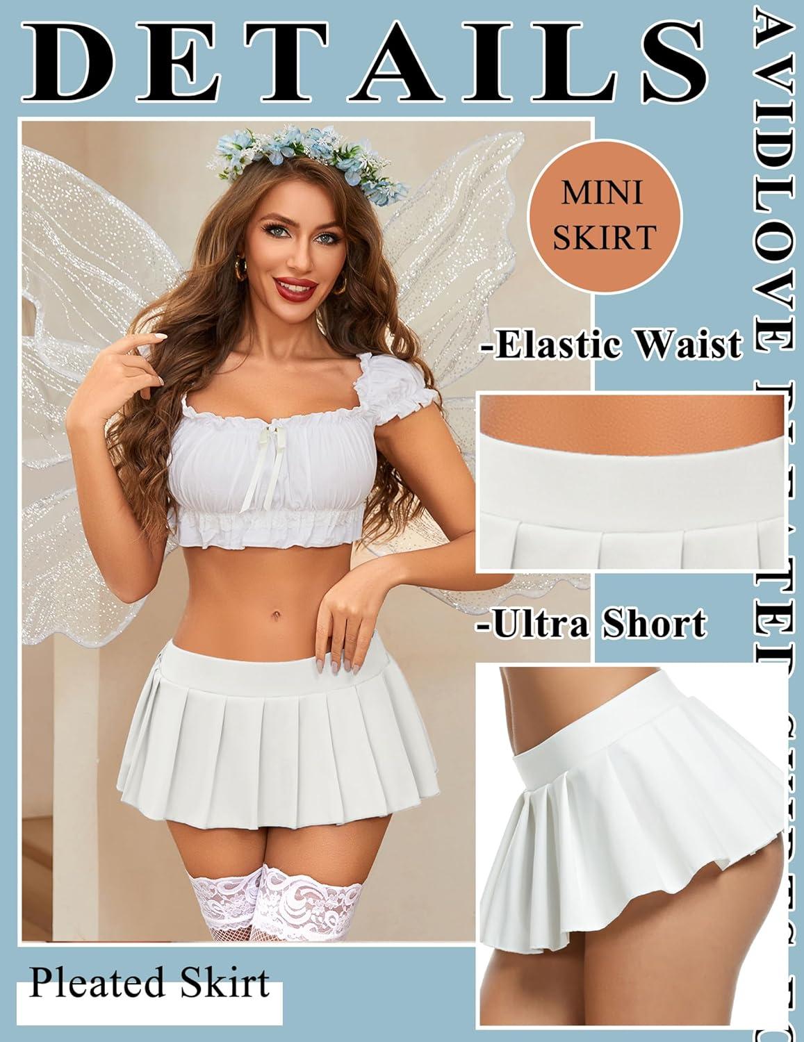 imageAvidlove Pleated Skirts for Women Y2k Mini Skirt Casual Short Skirts Micro Skirt XS4XLA White