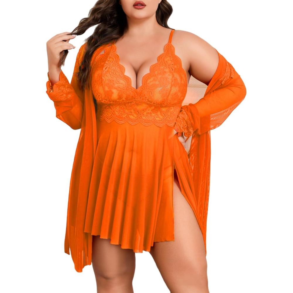 Avidlove Plus Size Lingerie Sexy Lingerie Set Women's Exotic Nightgowns Lace Chemise Lingerie Side Slit Nightdress(Orange)