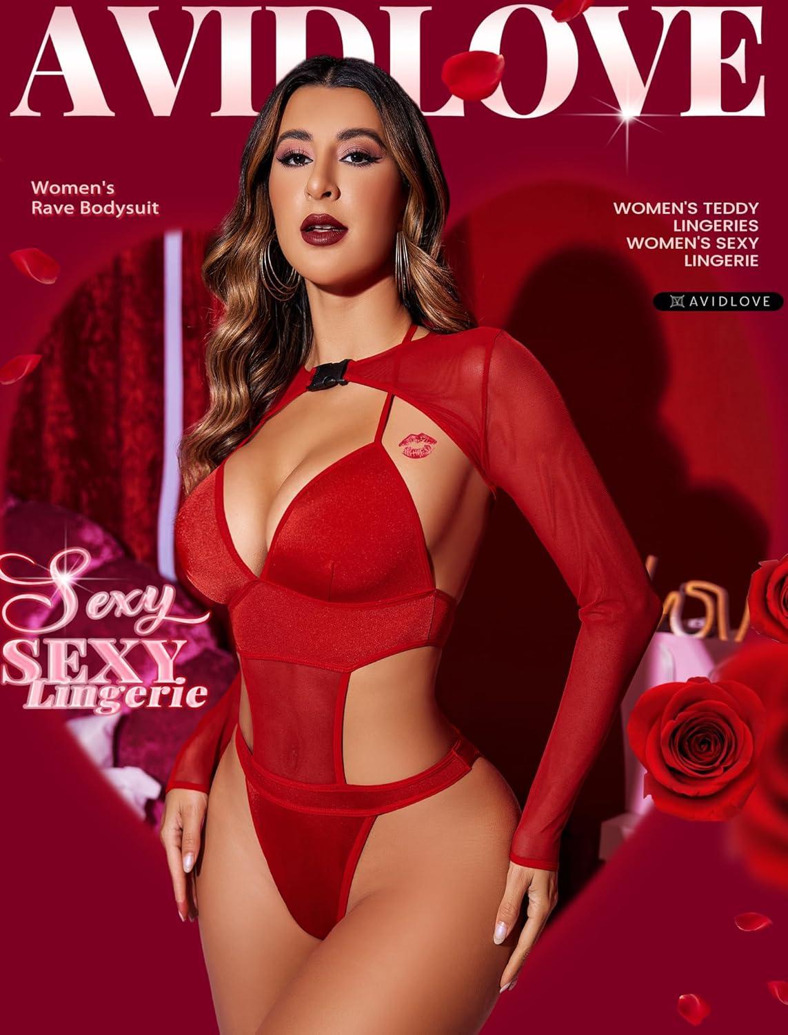 imageAvidlove Rave Outfits for Women Festival Sexy Lingerie Bodysuit Buckle Shrug Crop Top SetBred