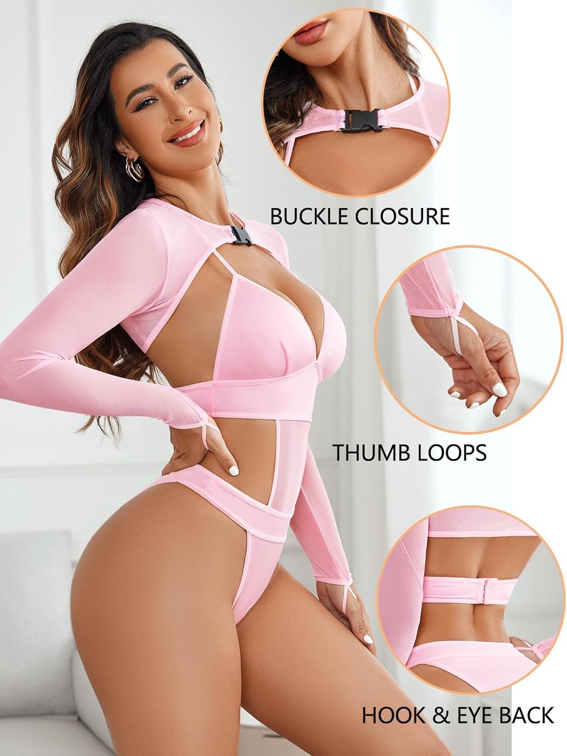 imageAvidlove Rave Outfits for Women Festival Sexy Lingerie Bodysuit Buckle Shrug Crop Top SetPink