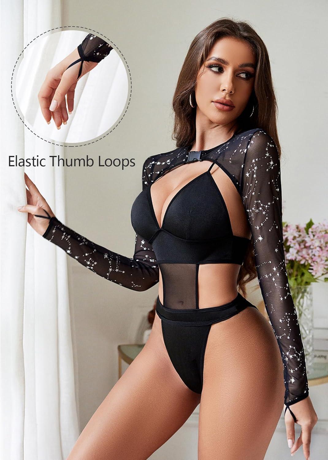 imageAvidlove Rave Outfits for Women Festival Sexy Lingerie Bodysuit Buckle Shrug Crop Top SetSparkle Star