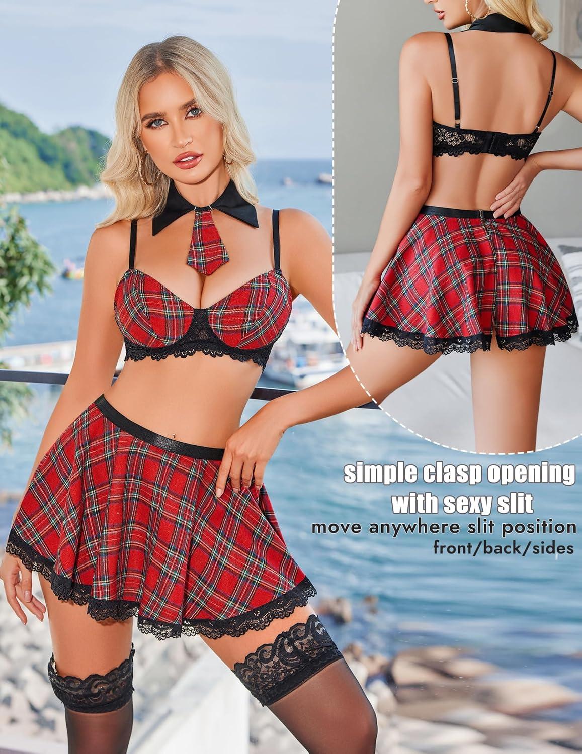 imageAvidlove Sexy Lingerie for Women Naughty School Girl Outfit Role Playing Lingerie Set Exotic CostumesGreen