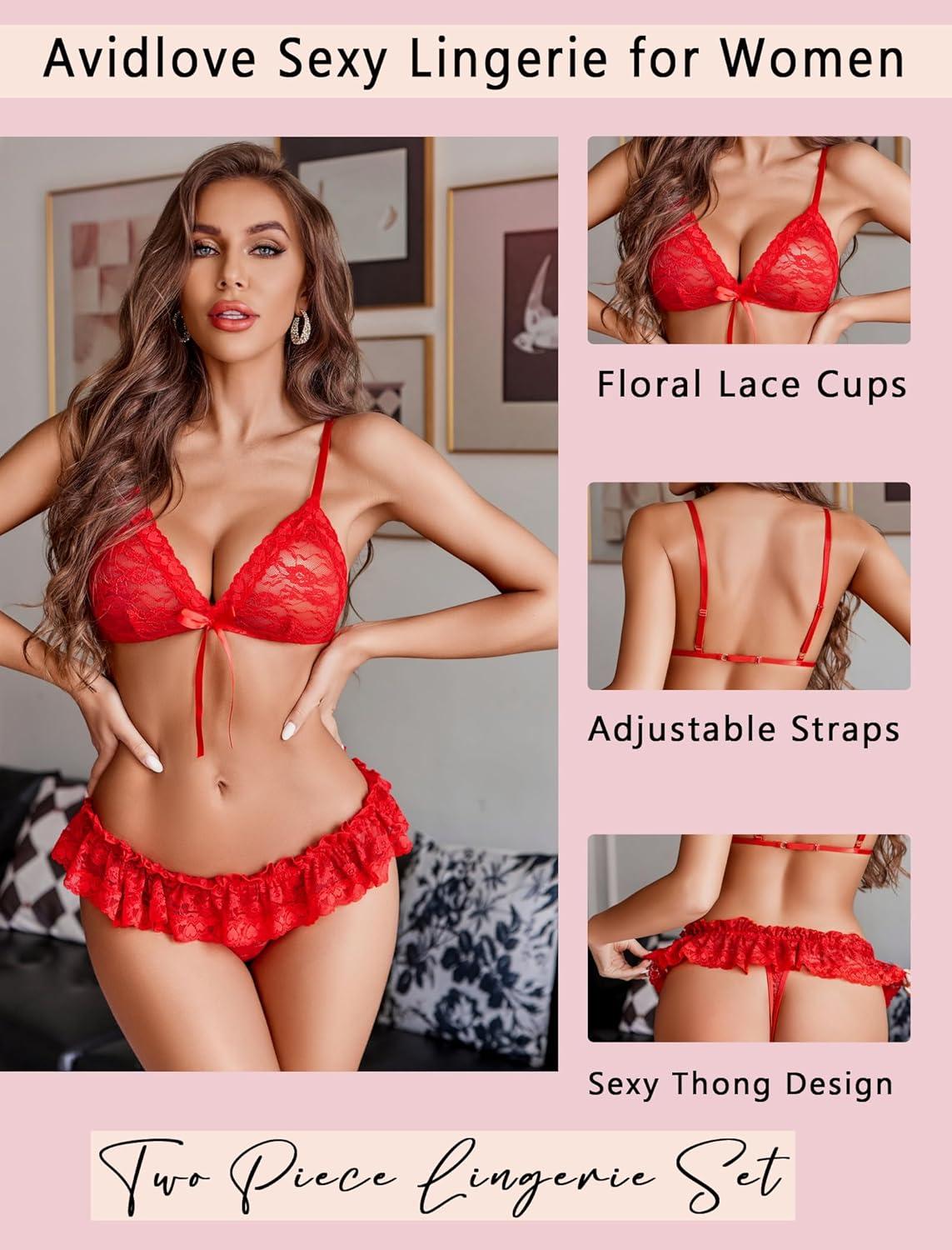 imageAvidlove Sexy Lingerie Set for Women Lace Bra and Panty Sets 2 Piece Sheer Babydoll Outfits SXXLCarmine Red