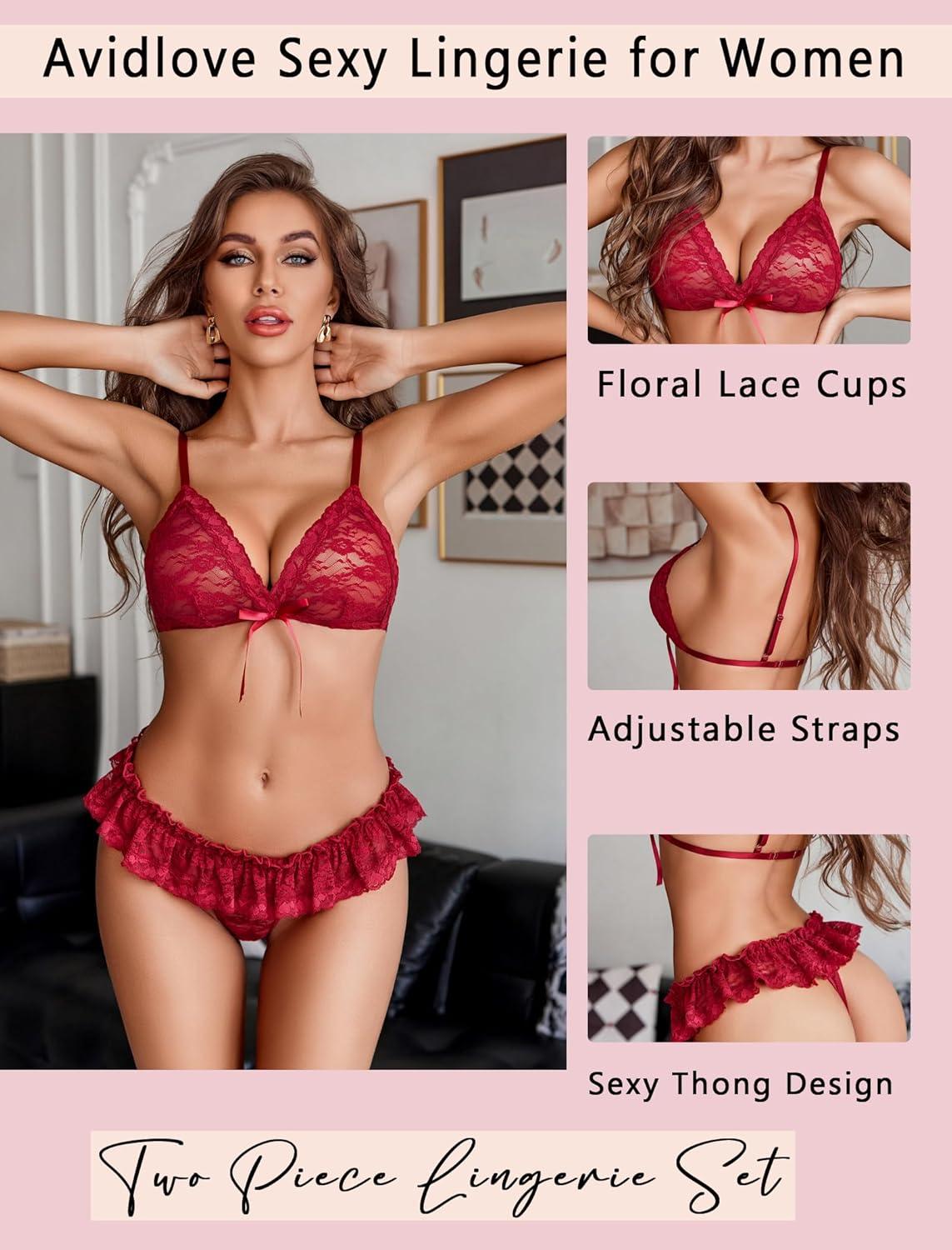 imageAvidlove Sexy Lingerie Set for Women Lace Bra and Panty Sets 2 Piece Sheer Babydoll Outfits SXXLDark Red