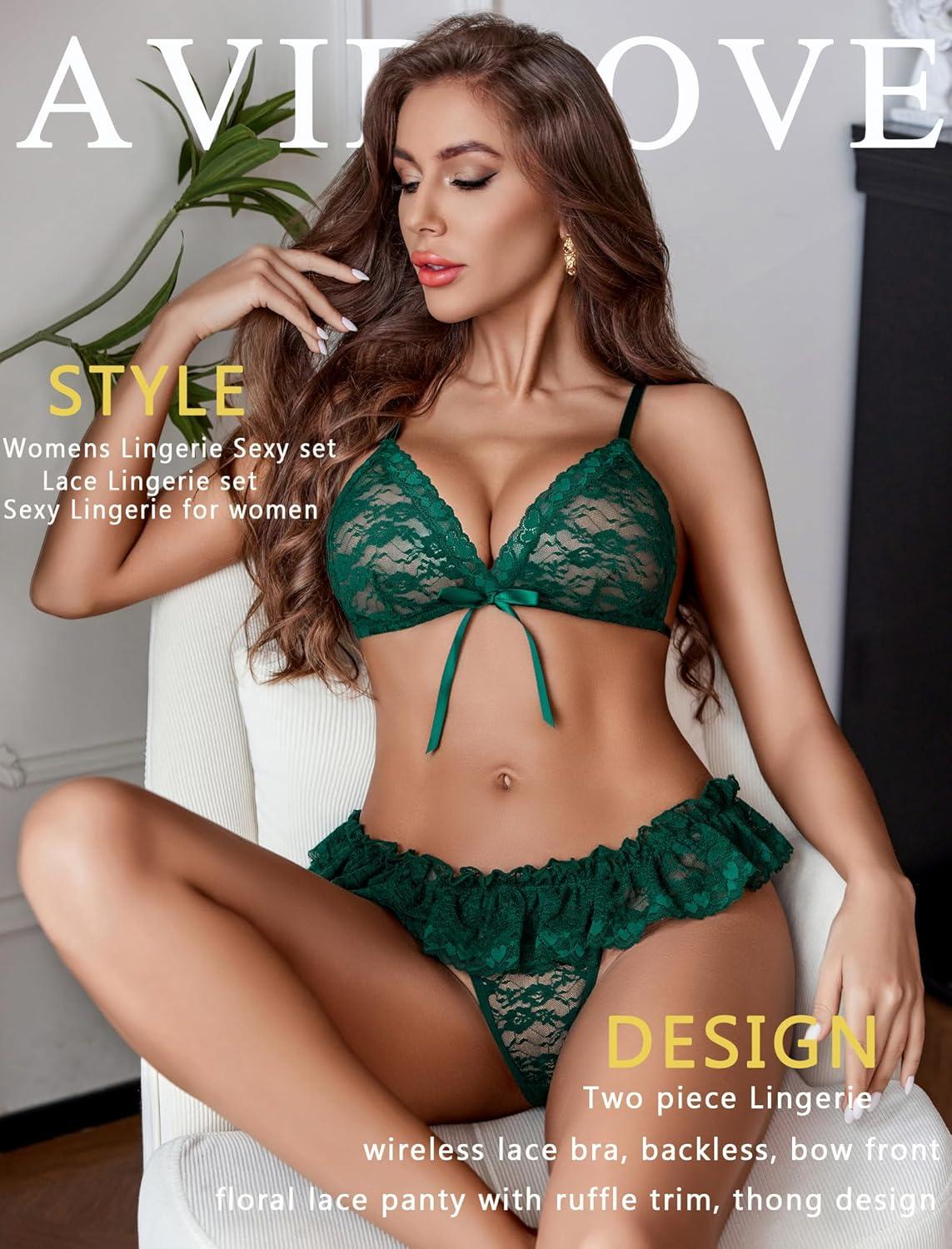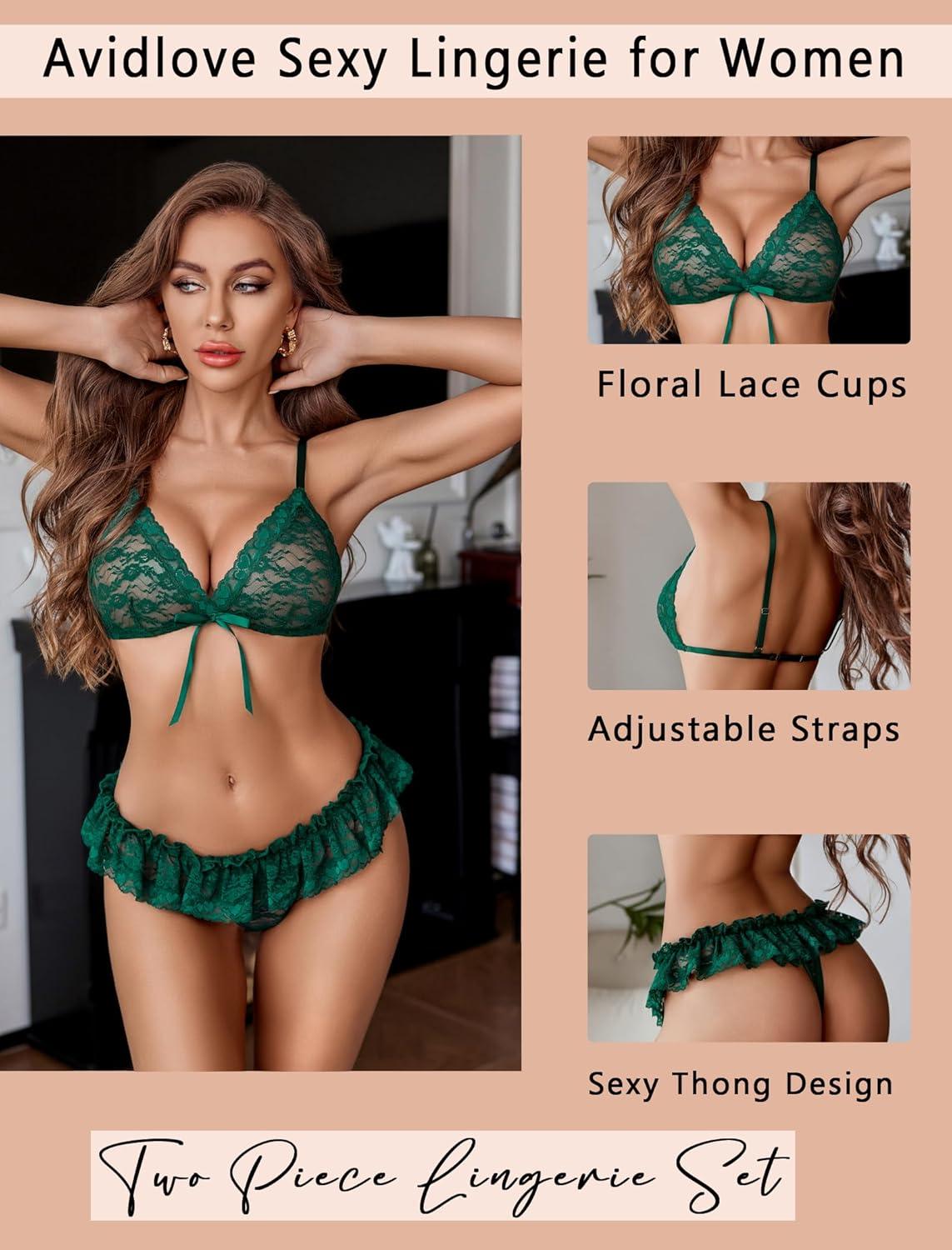 imageAvidlove Sexy Lingerie Set for Women Lace Bra and Panty Sets 2 Piece Sheer Babydoll Outfits SXXLGreen