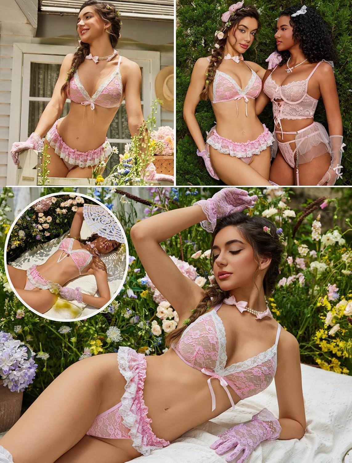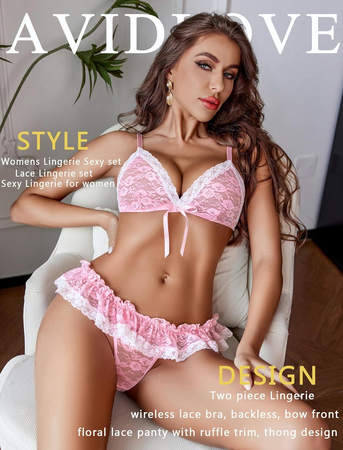 imageAvidlove Sexy Lingerie Set for Women Lace Bra and Panty Sets 2 Piece Sheer Babydoll Outfits SXXLPink