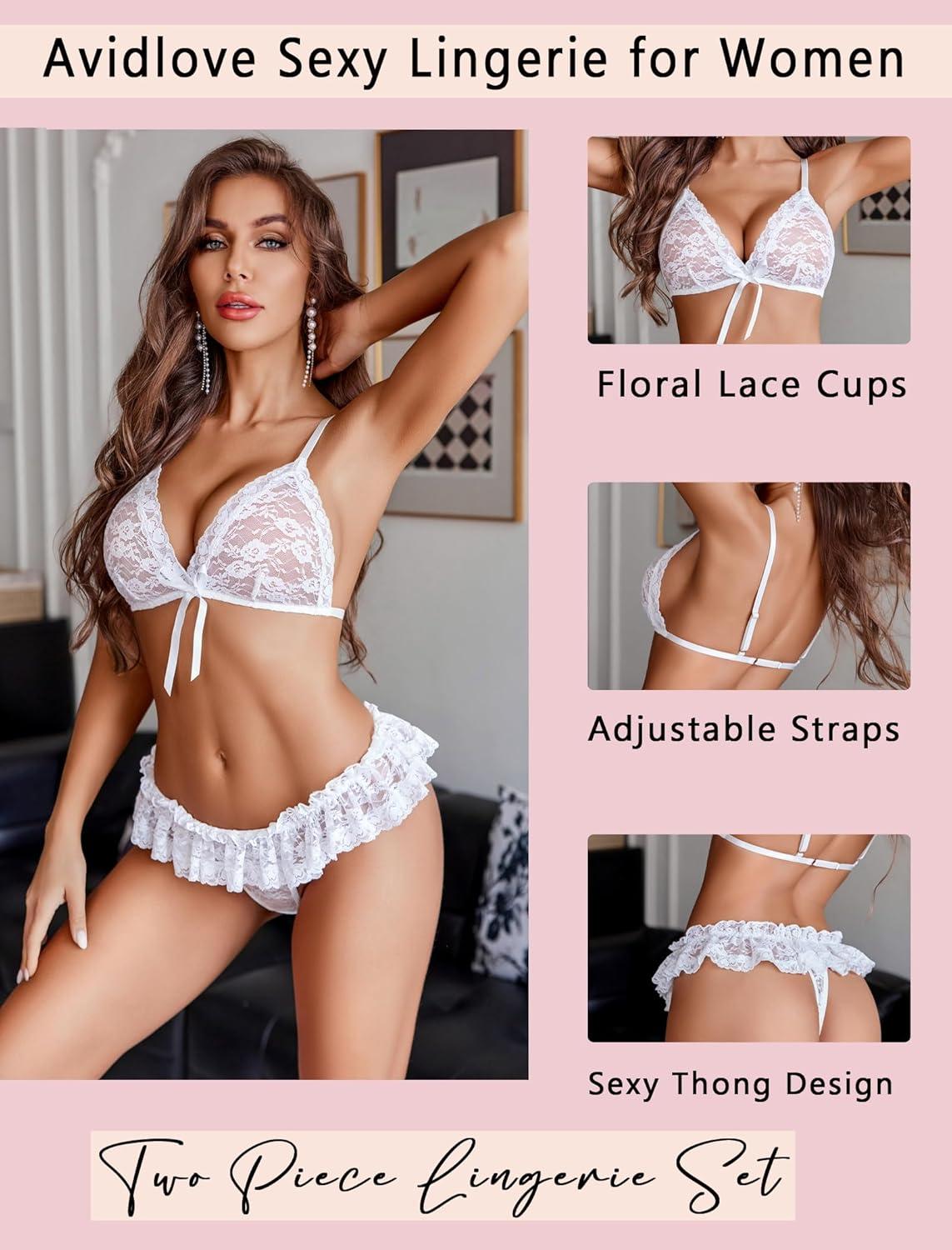 imageAvidlove Sexy Lingerie Set for Women Lace Bra and Panty Sets 2 Piece Sheer Babydoll Outfits SXXLWhite