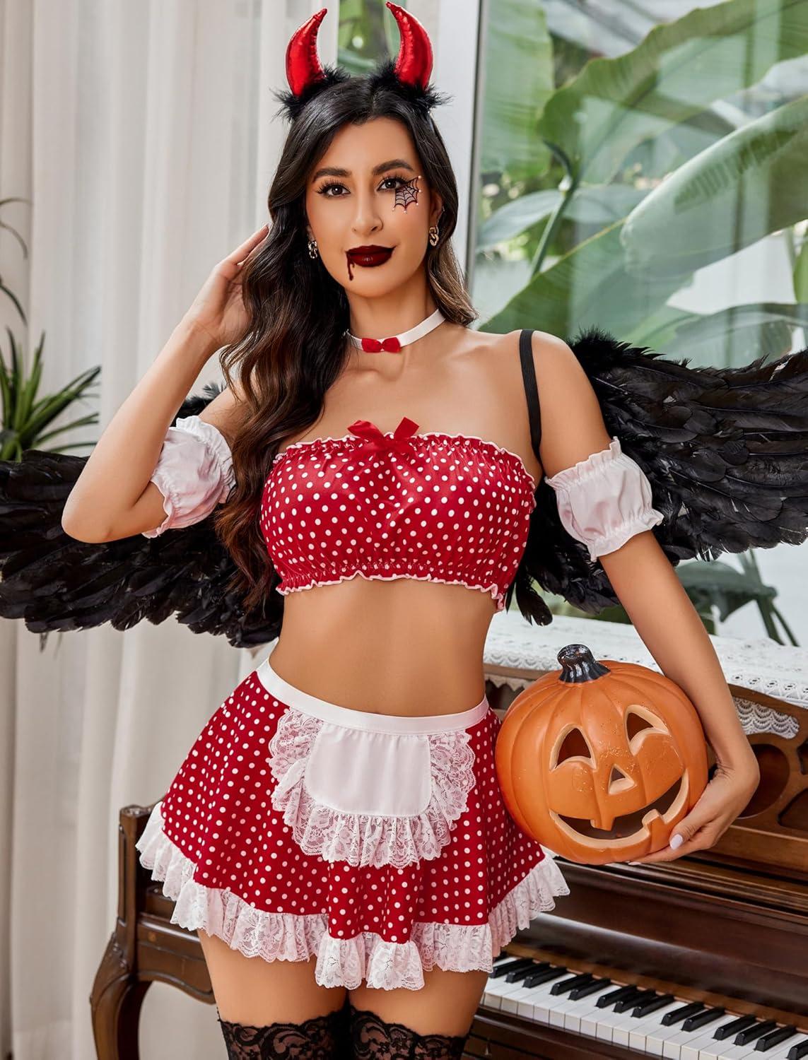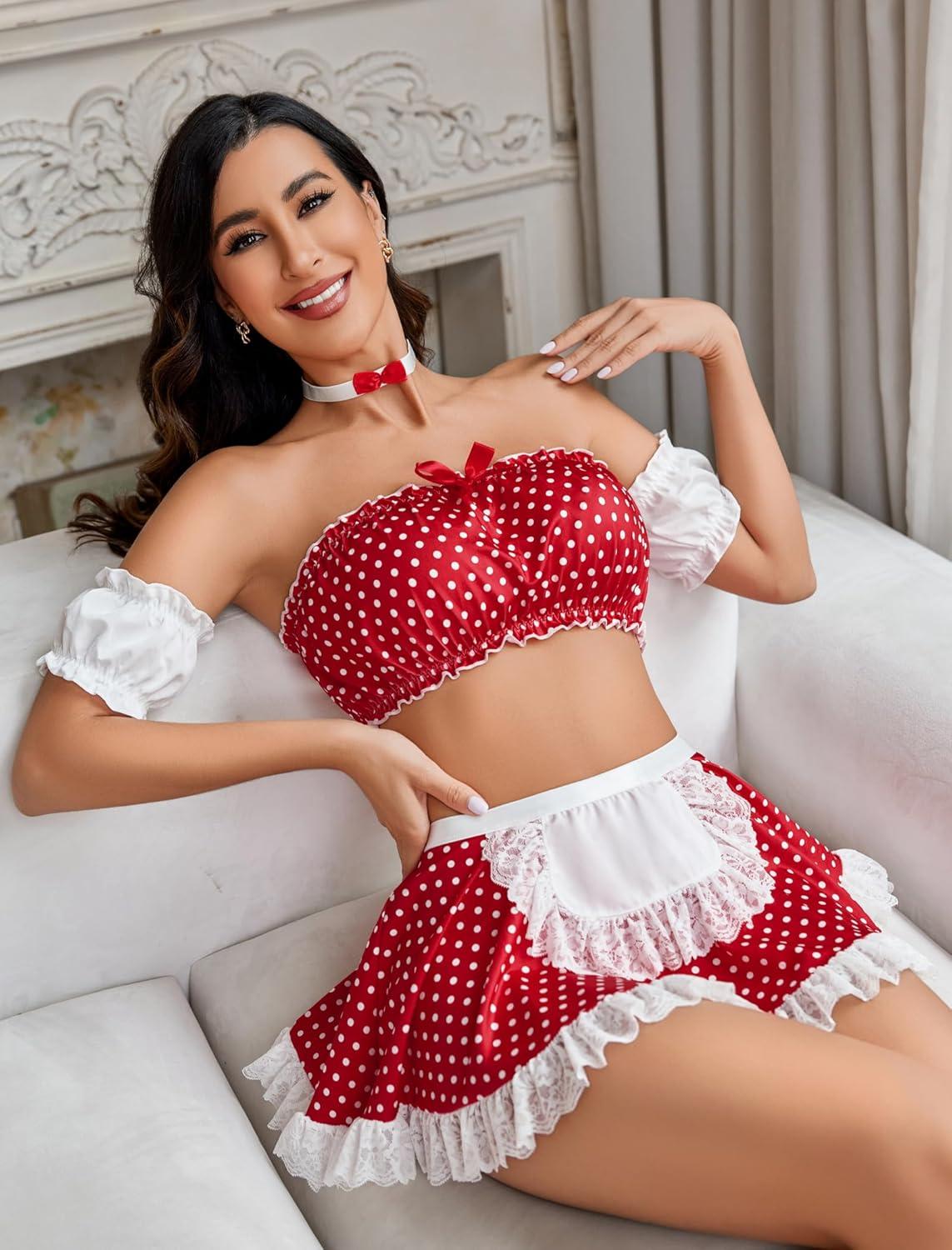 Get the Avidlove Sexy Maid Lingerie for Women Cosplay Lingerie Set Contrast Lace Maid Costume Set(5pack)(Red and White) you want at a price you can afford with our markdown sale.