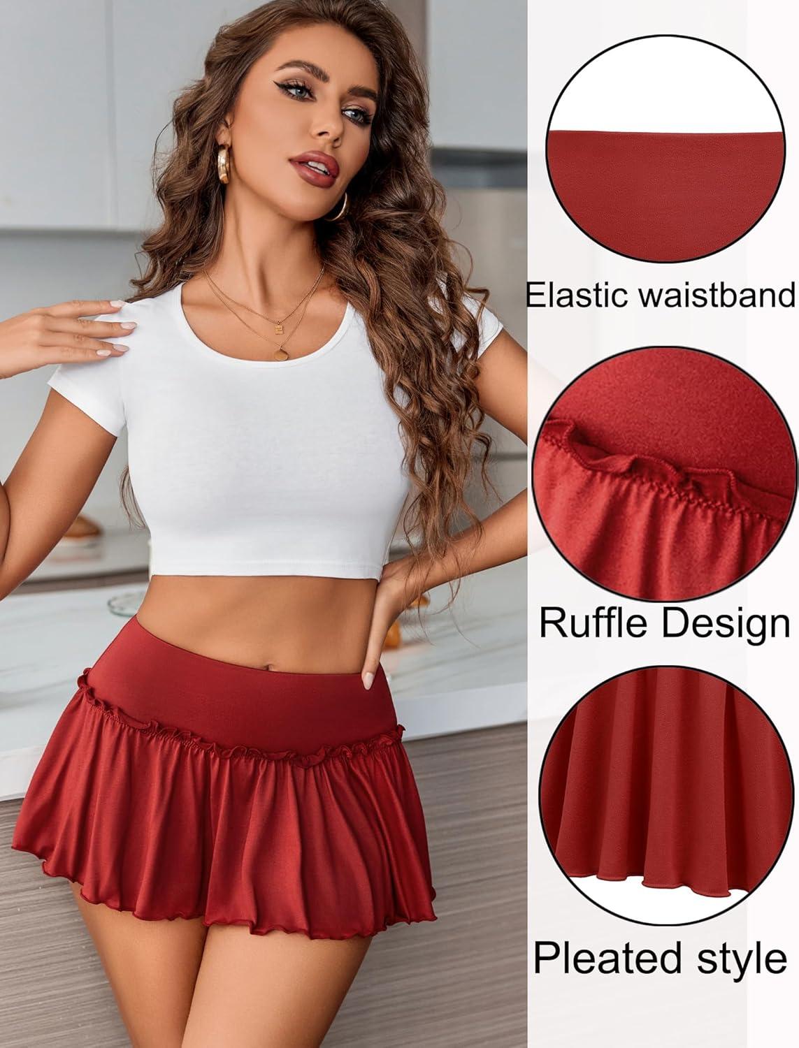 Avidlove Sexy Mini Skirt for Women Solid Ruffle Lingerie Skirt Short Skirts(Carmine Red)