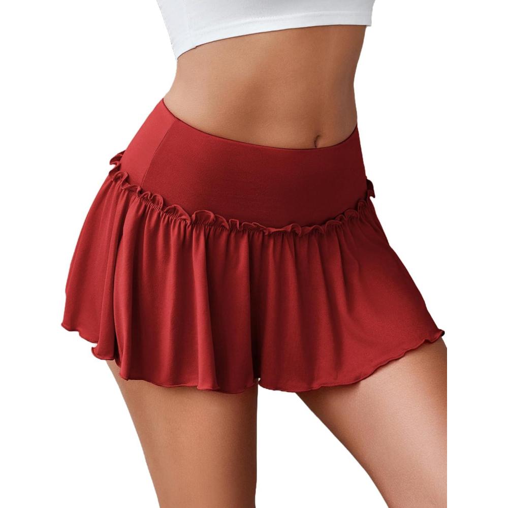 imageAvidlove Sexy Mini Skirt for Women Solid Ruffle Lingerie Skirt Short SkirtsDark Red