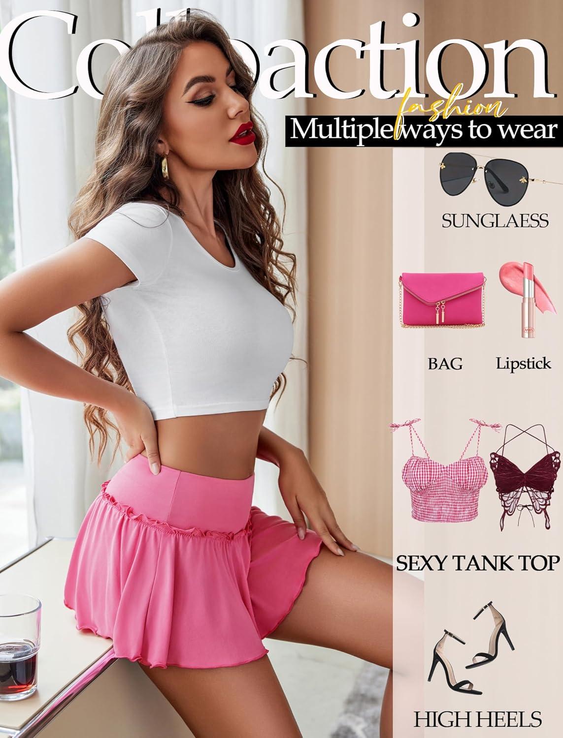 imageAvidlove Sexy Mini Skirt for Women Solid Ruffle Lingerie Skirt Short SkirtsPink