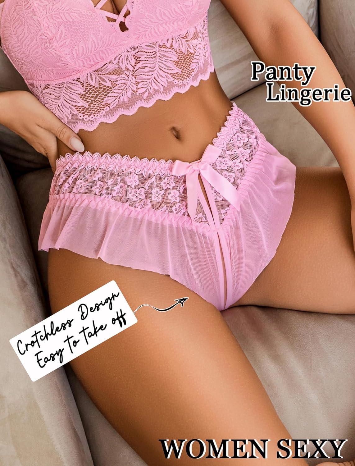 Avidlove Sexy Panties for Women Bikini Underwear Floral Lace Briefs with Cute Bow Center 1-4 Pack(Pink)