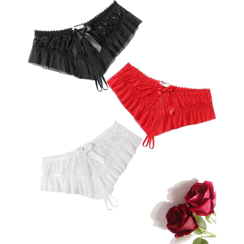 Avidlove Sexy Panties for Women Bikini Underwear Floral Lace Briefs with Cute Bow Center 1-4 Pack(Red+black+white)