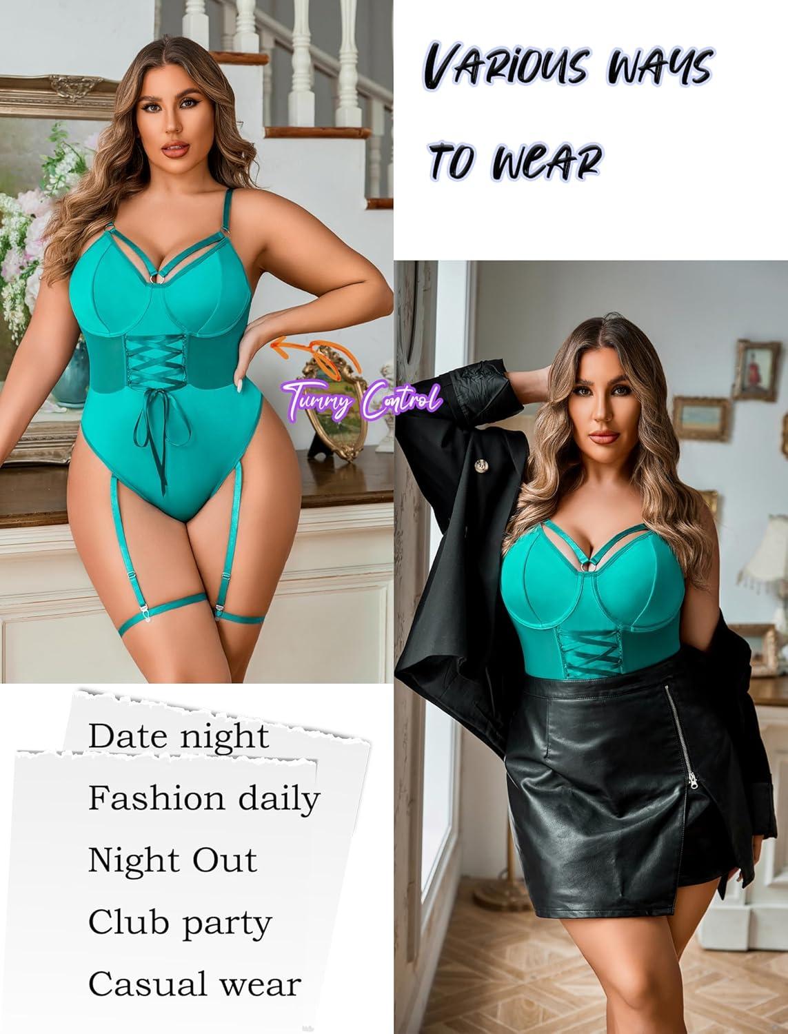 imageAvidlove Sexy Plus Size Lingerie Set for Women Sexy Bodysuit with High Slit dress and Garter Belt L5XLDark Peacock Blue