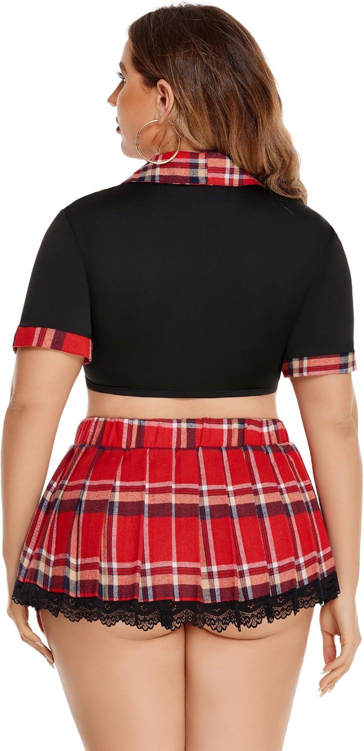 Avidlove Sexy Plus Size Lingerie Set for Women Sexy School Girl Halloween Costumes Cosplay Lingerie with Mini Skirt(Red and Blue Plaid)
