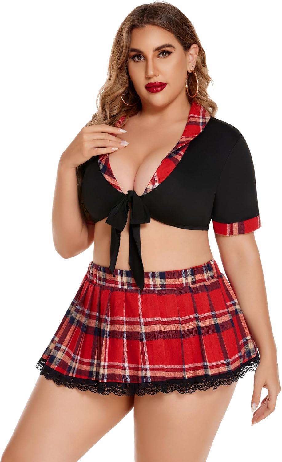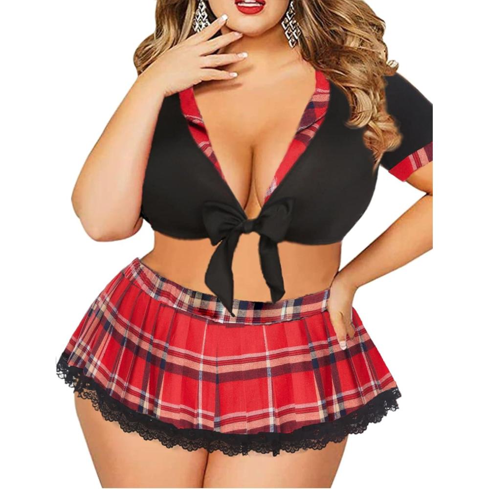 imageAvidlove Sexy Plus Size Lingerie Set for Women Sexy School Girl Halloween Costumes Cosplay Lingerie with Mini SkirtRed and Blue Plaid