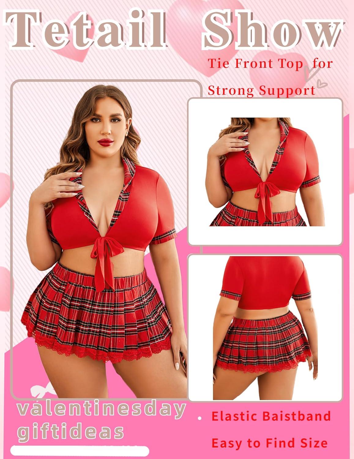 Avidlove Sexy Plus Size Lingerie Set for Women Sexy School Girl Halloween Costumes Cosplay Lingerie with Mini Skirt(Red)