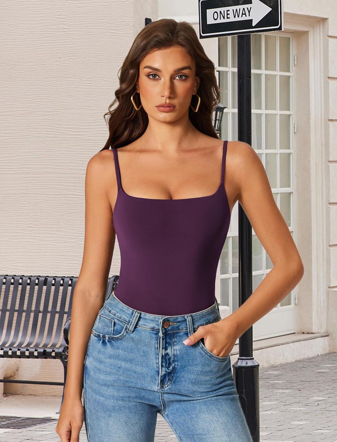 Avidlove Tank Top Bodysuit for Women Square Neck Double Lined Body Suits One Piece Thong Basic Summer Cami Tops(Deep Purple)