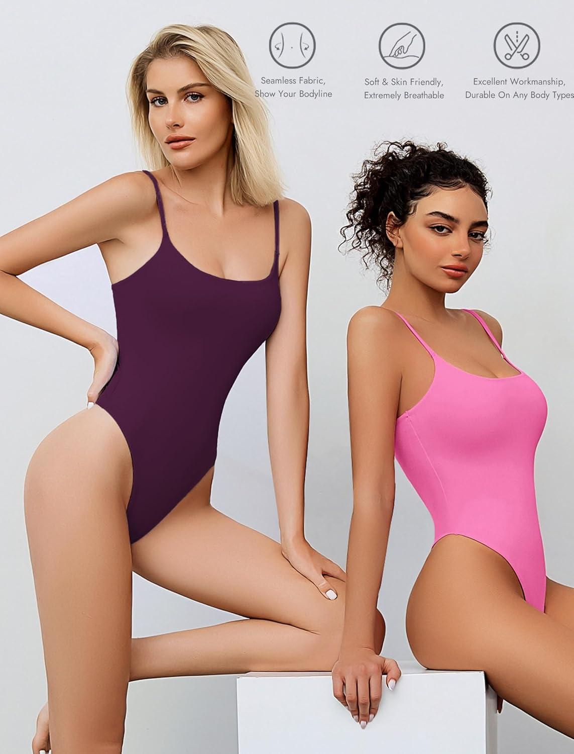 imageAvidlove Tank Top Bodysuit for Women Square Neck Double Lined Body Suits One Piece Thong Basic Summer Cami TopsDeep Purple