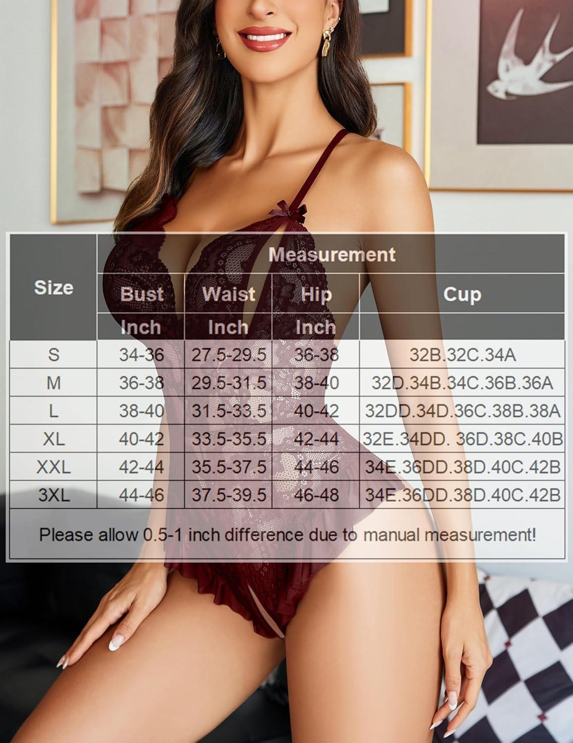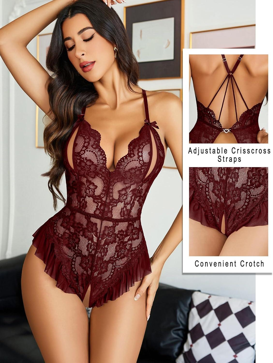 Avidlove Teddy Lingerie for Women Sexy Cut Out Lace Bodysuit One Piece Criss Cross Backless Mini Babydoll(Dark Red)