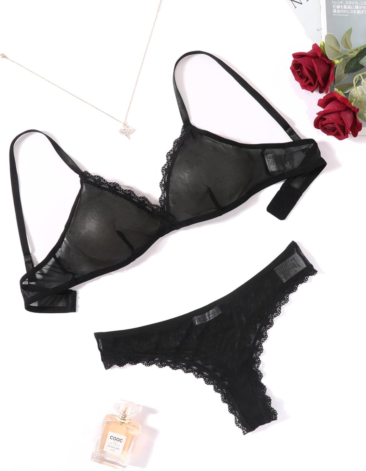 imageAvidlove Wireless Lace Lingerie Set Floral Print Bra and Panty Sets Cute Naughty OutfitsBlack