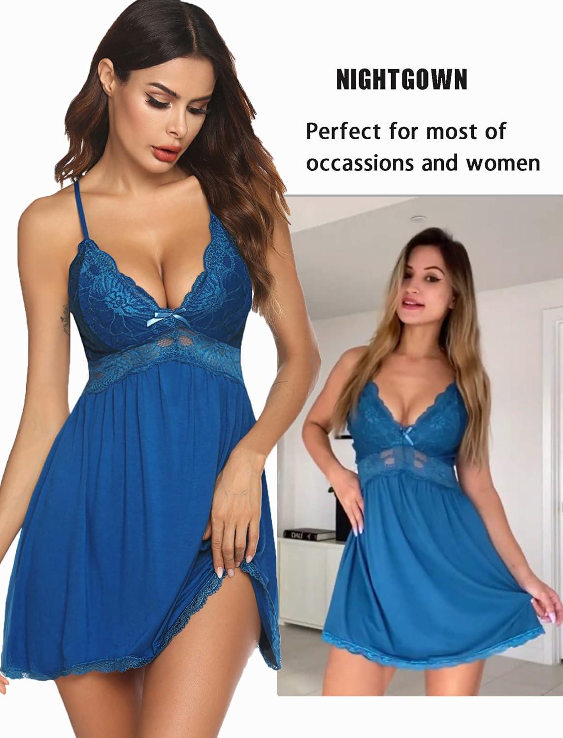 Get your hands on our exclusive Avidlove Women Chemise Night Gown Lace Modal Sleepwear V-Neck Full Slip Babydoll Lingerie Sexy Nightgowns(Blue Green) collection, now at a discounted price.