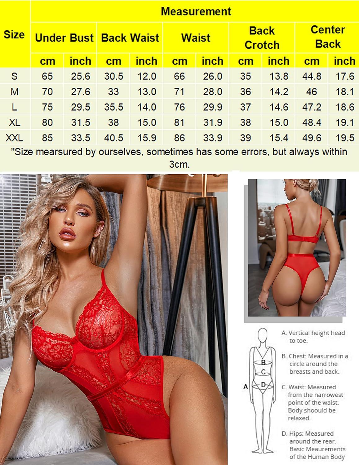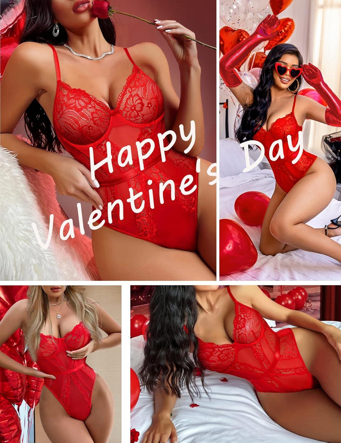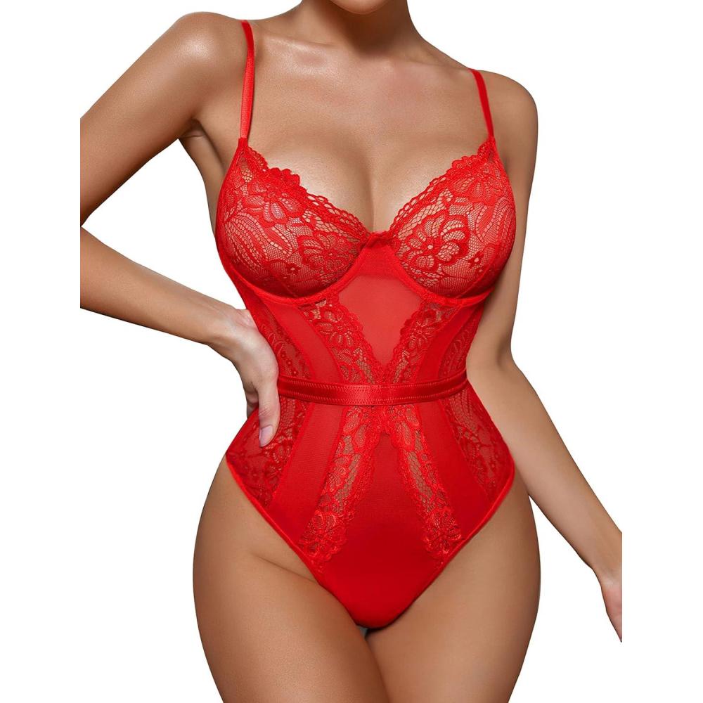 Avidlove Women Lingerie Bodysuit Lace Teddy Snap Crotch One Piece Underwire Babydoll(Red)